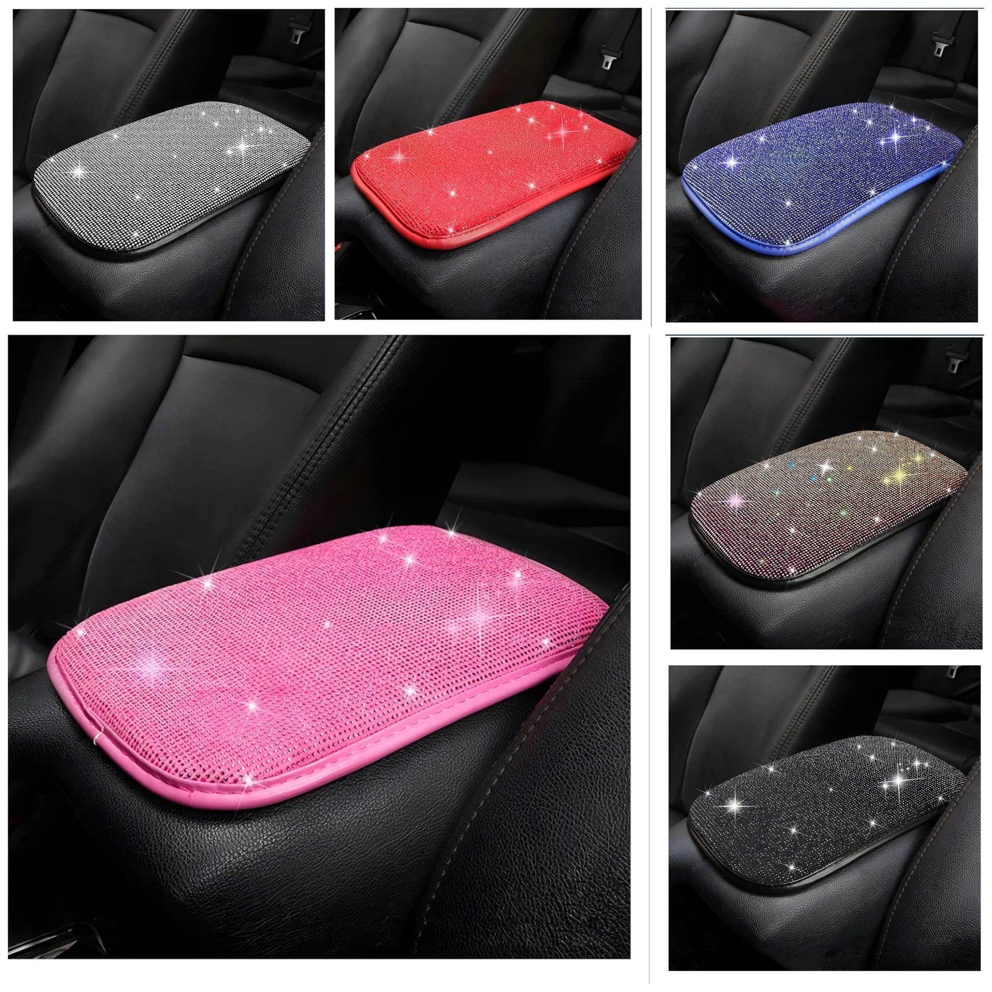 Bling Center Console Cover, Diamond Fashion ArmRest Pad, Crystal Soft Arm Rest Protective Cushion, Car Accessories for Women Girls, 11.8"×8.5" for Most of Vehicles, SUVs, Trucks