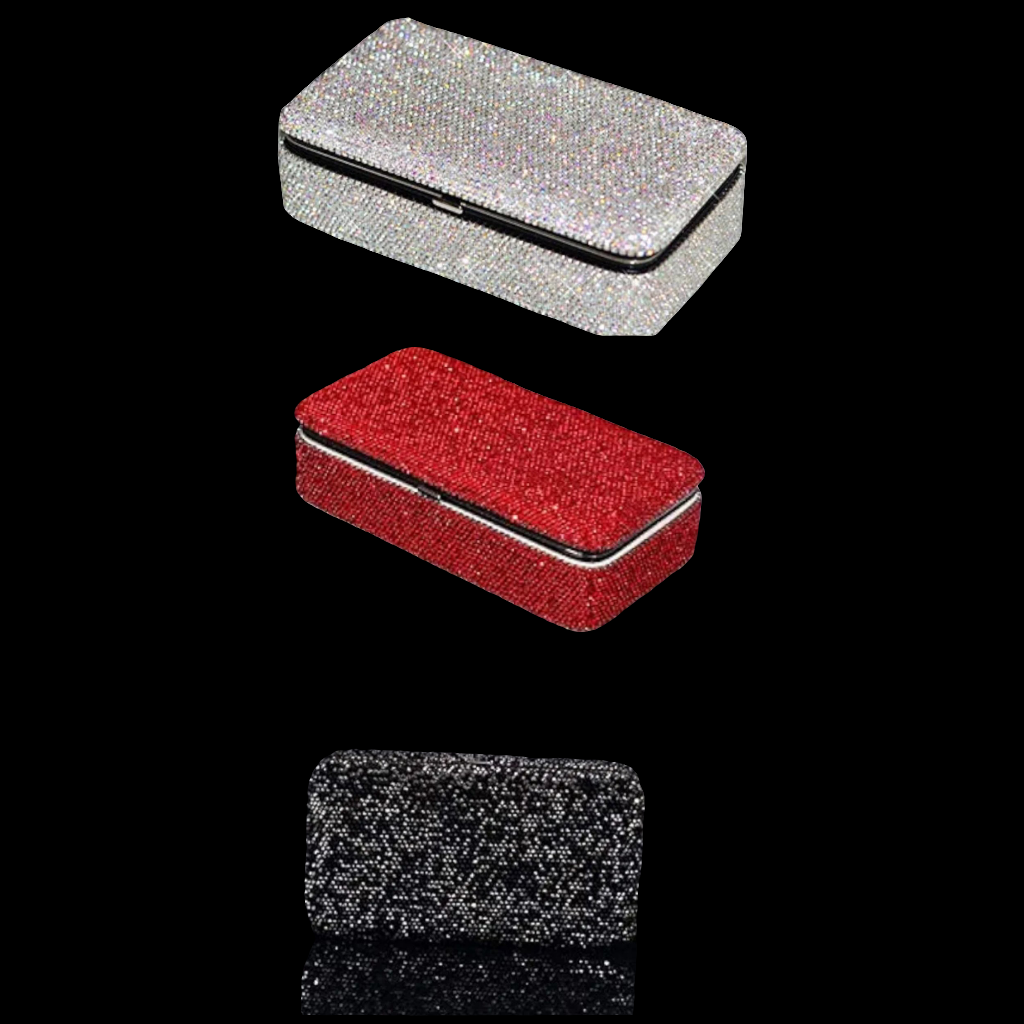 Bling Crystal Leather Portable Travel Jewelry Box Organizer Display Storage Case for Rings Earrings Necklace (