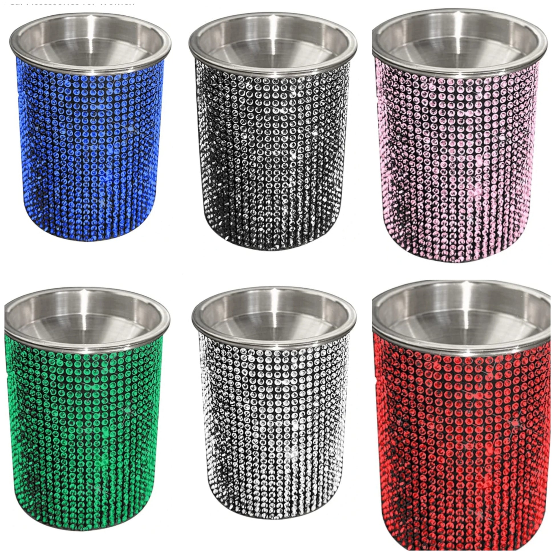 Bling Diamond Car Ashtray with Lid,Portable Ashtray for Car,Mini Car Cup Holder Trash Ashtray Can,Detachable Stainless Steel Smokeless Ash Tray with Shiny Crystal Rhinestones Car Accessories