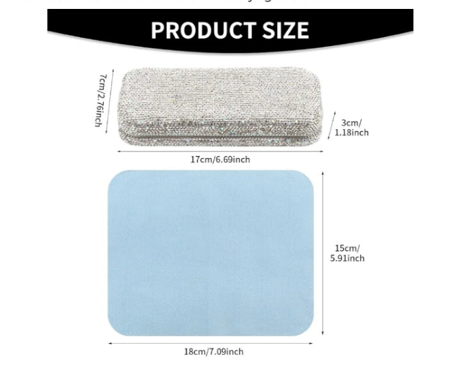 【HARD SHELL】The glasses case is covered by clay and rhinestone, no peculiar smell, the frame is not easy to deform, anti-extrusion, and anti-fall; thickened flocking lining, giving your glasses safe care