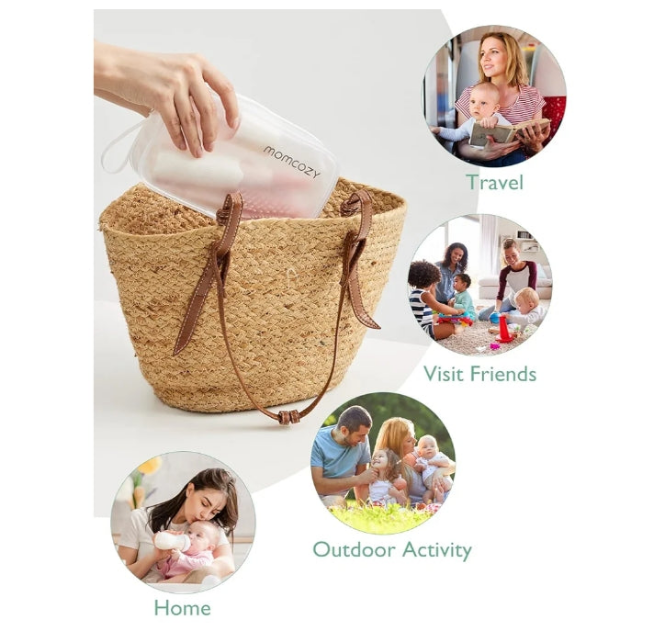 Versatile Cleaning Tools - Momcozy bottle brush set includes different brush heads to cater to various cleaning needs: bottle brush head for bottles and breast pumps, angled brush head for teats, and silicone tube brushes for narrow openings like straws.