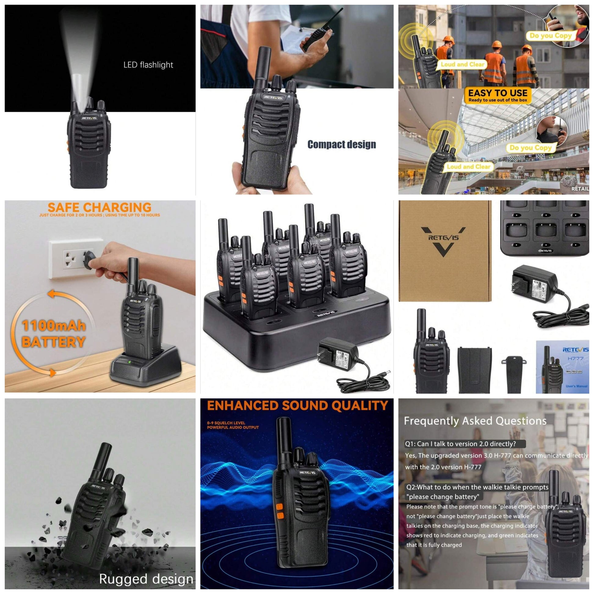 Case Of 6,H-777 Walkie Talkies For Adults Long Range, Rechargeable Two-Way Radios,With 6-Way Multi Unit Charger,Flashlight Handheld 2 Way Radios