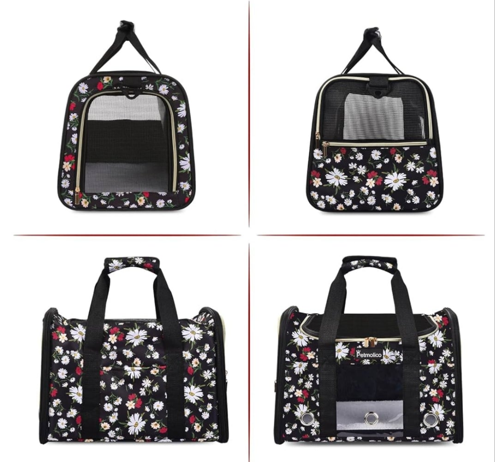 Cat Carrier Dog Carrier, Airline Approved Soft Pet Travel Carrier with 3 Open Doors Mesh Windows for Cats Puppy 16 lbs, White Daisy Medium