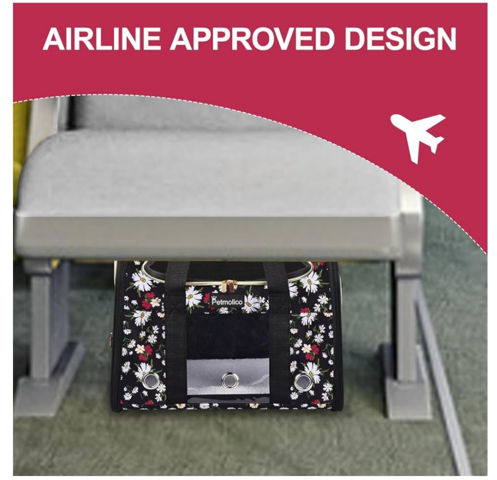 Airline Approved Cat Carrier: Petmolico pet cat carrier size: 16"L x 11"W x 11"H, suitable for cat puppy weight up to 16 lbs. It conforms to most domestic airline under-seat dimension guidelines. ( NOTE: Please contact your airline prior to booking a flight to ensure this pet carrier meets their specific requirements. )