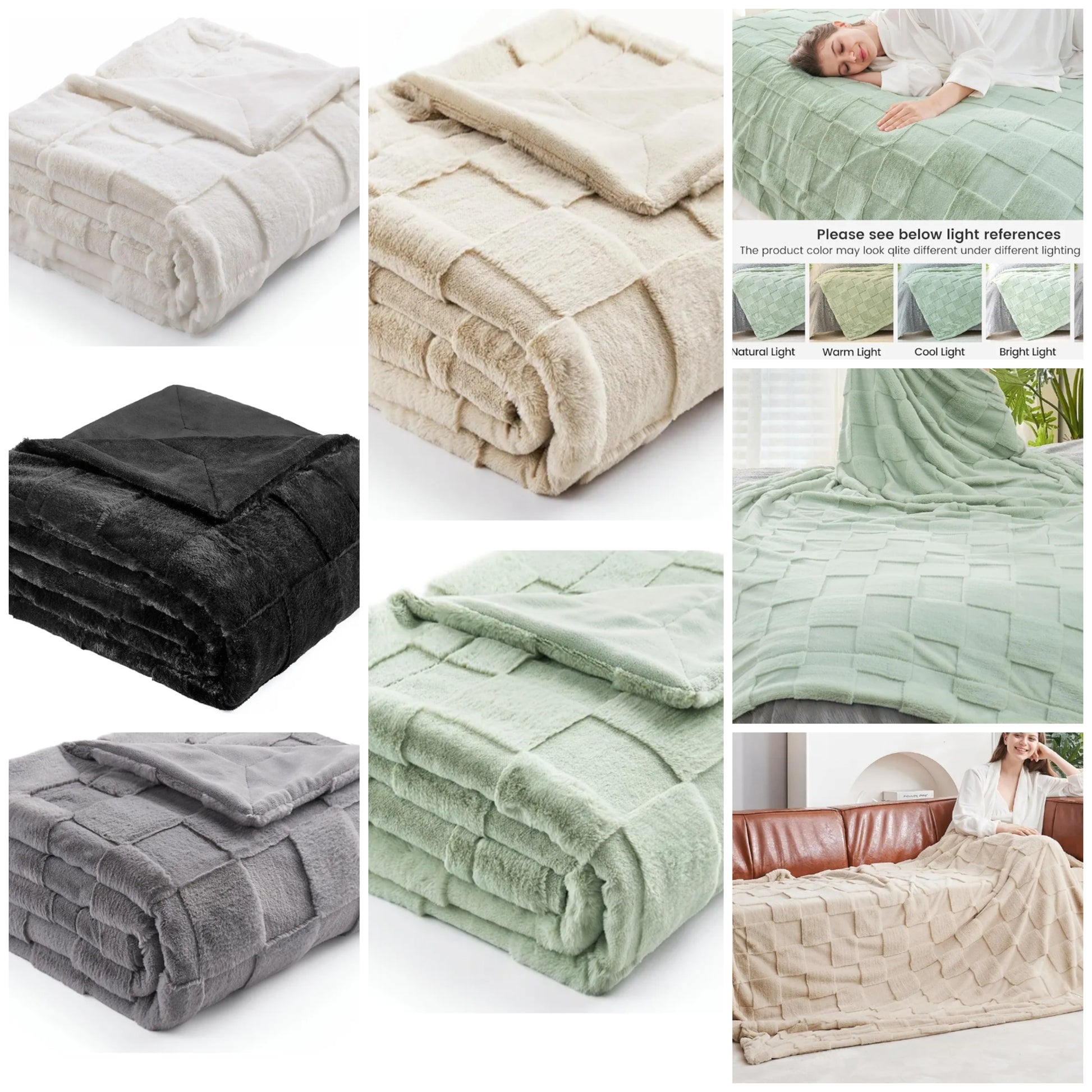 Classic Checker Design: Featuring a unique 3D jacquard checkered pattern on one side, this throw blanket is a stylish decoration. Its plush feel and luxurious look can easily match your home décor.