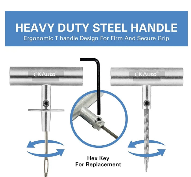 【Premium Quality】-- Our T-handle Tools are made of the high strength rustless zinc alloy, can easily pierce the plugs and quickly finished the repair work. Tire repair strips of best natural rubber are equipped with airtight bag, excellent ageing resistant performance.