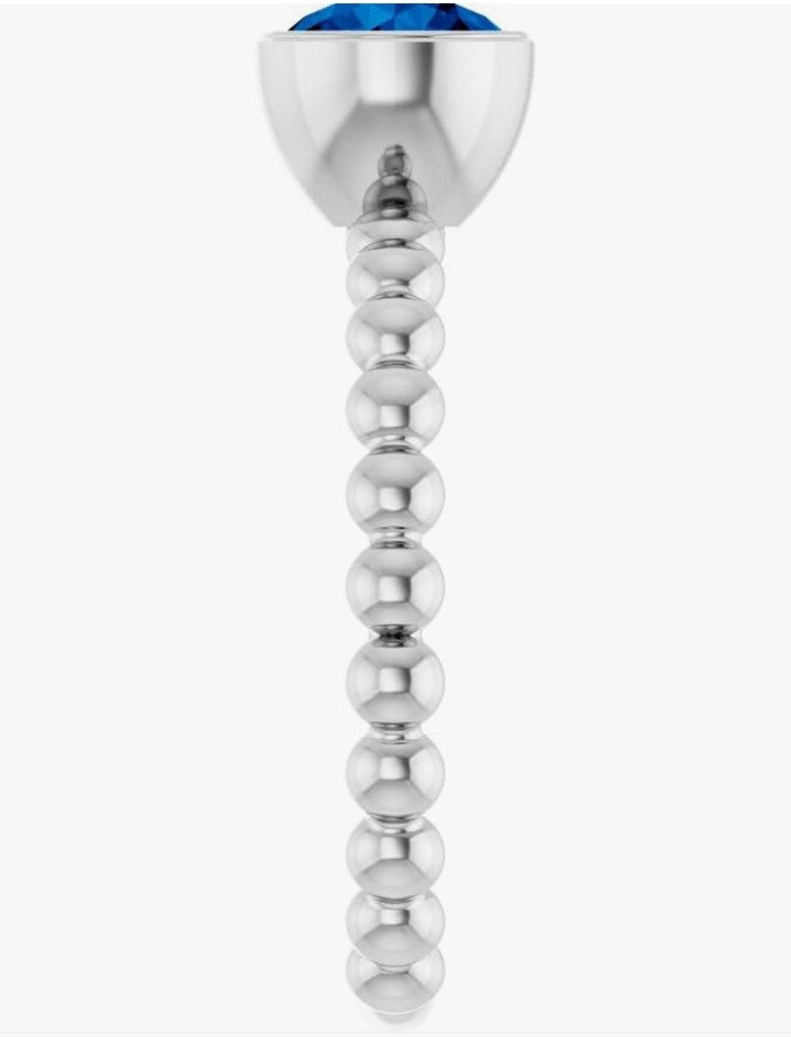 14k White Gold Bezel-Set Blue Sapphire Family Stackable Beaded Fashion Ring Fine Jewelry For Women Gifts For Her, Size 7 Ring size