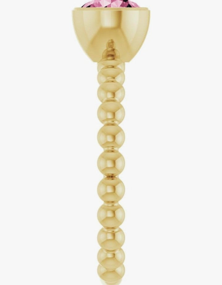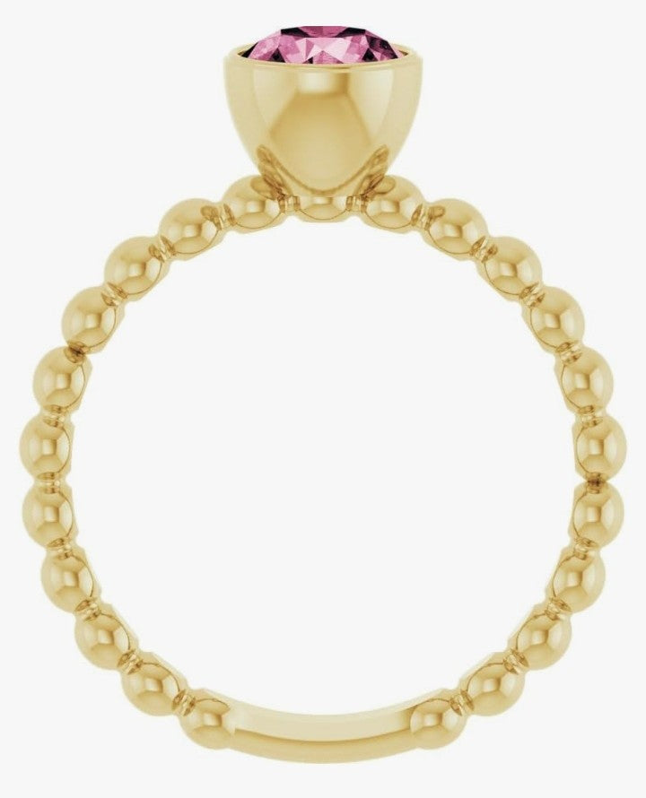 Description: 14k Yellow Gold Pink Tourmaline Family Stackable Beaded Ring