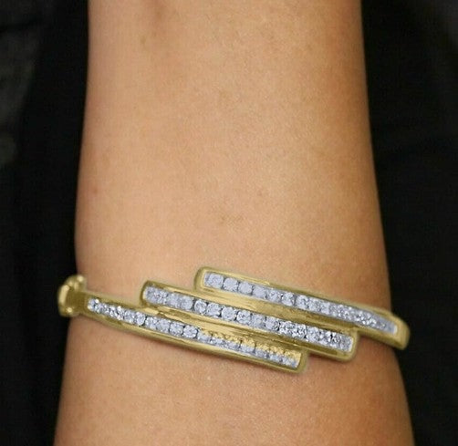 GOLD JEWELRY DEALS FROMCOCOMONEY.STORE!!! LIMITED SUPPLY GET IT NOW BEFORE IT'S SOLD OUT!!!! Triple Row Cluster Bangle Bracelet are crafted In 14k Solid Yellow Gold with Round Cut Natural White Diamonds. This Bangle Bracelet are perfect for professing your affections for that special someone or as a just thinking of you gift. Gift this beautiful piece to yourself or to someone you love.