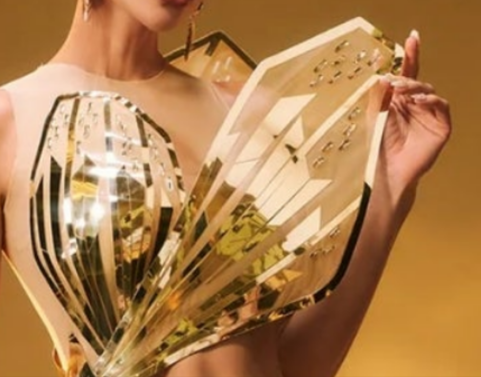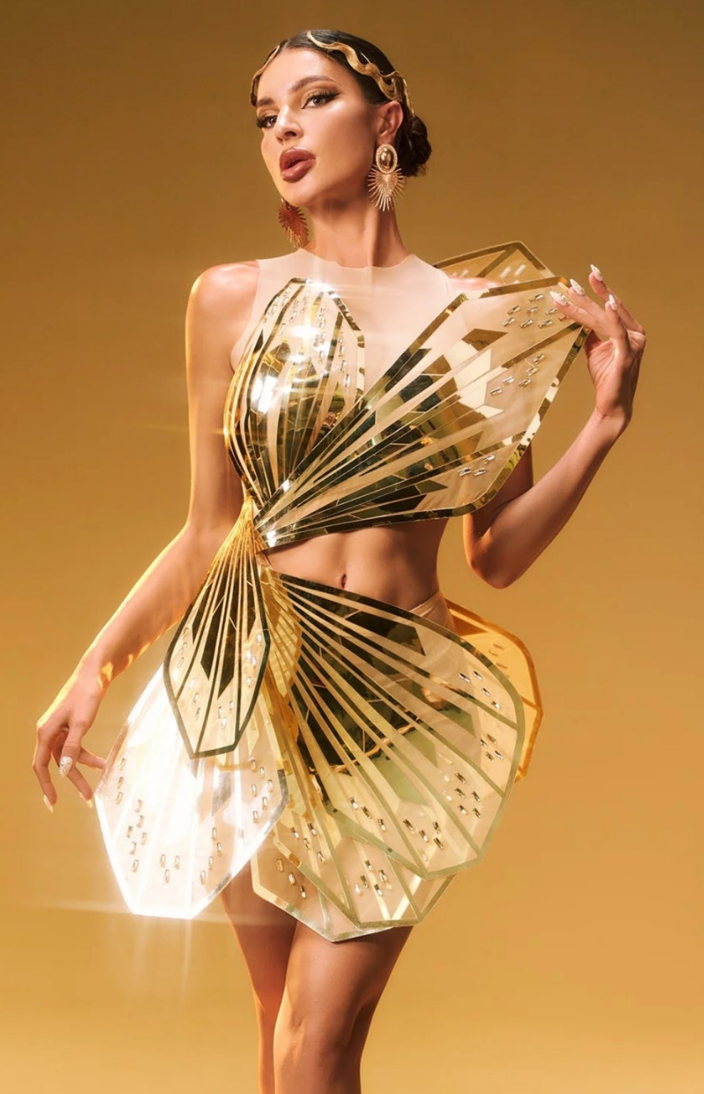 COCOMONEY Butterfly Embellished Cutout Mini Dress In Gold size XS