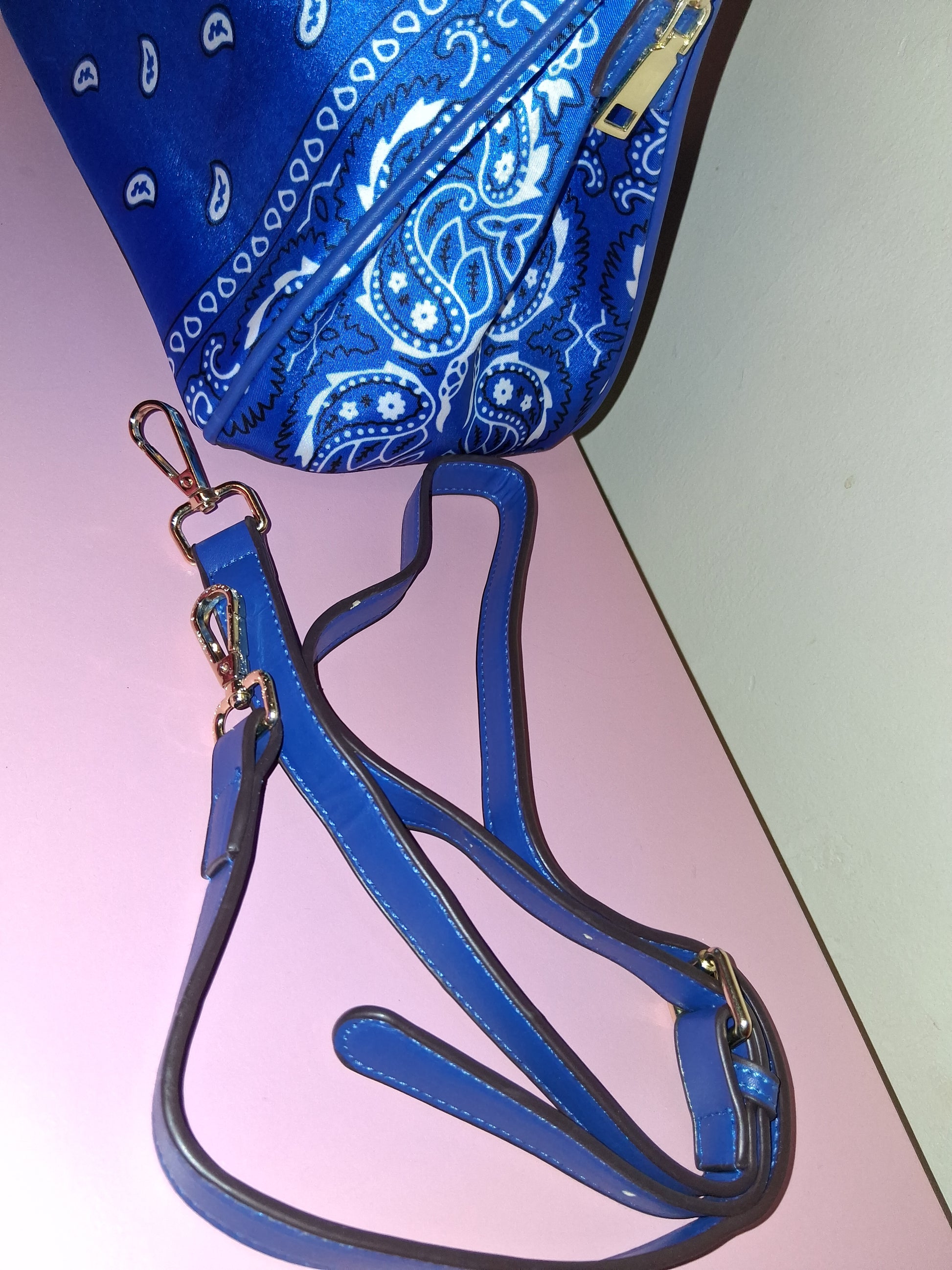 COCOMONEY HANDBAG BLUE WITH STRAP 11 HALF IN BY 9IN BY 6IN poly