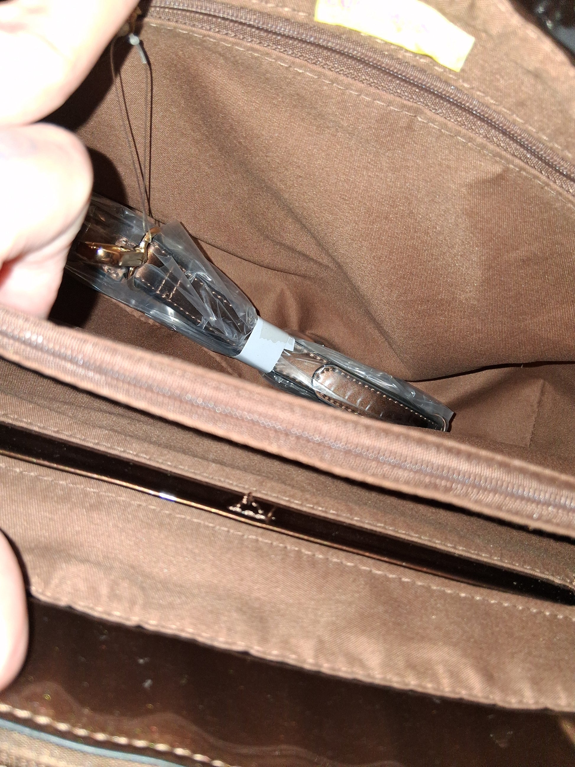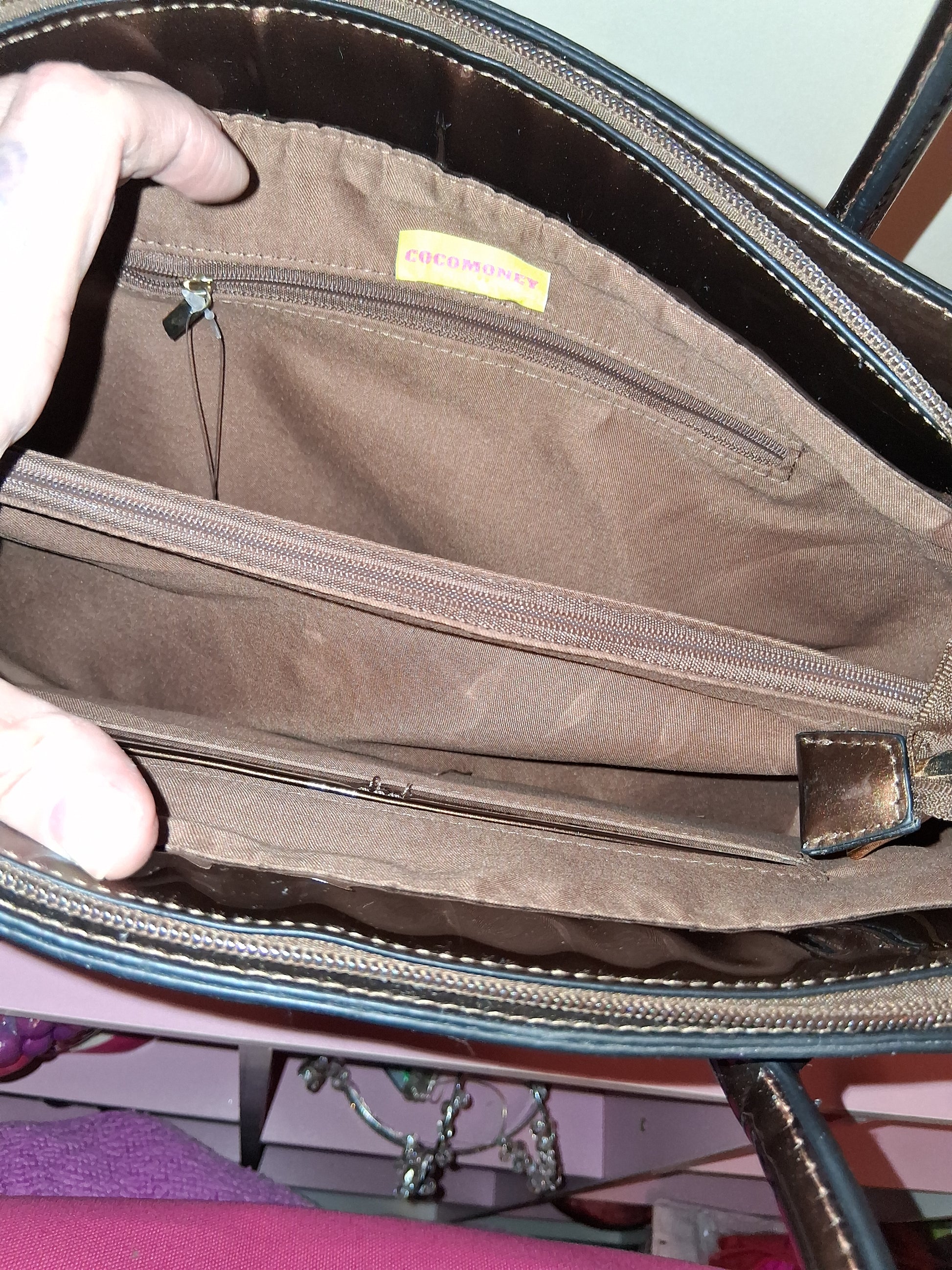 COCOMONEY HANDBAG ONLY 1 BROWN 14IN BY 10IN BY 4IN with strap pu