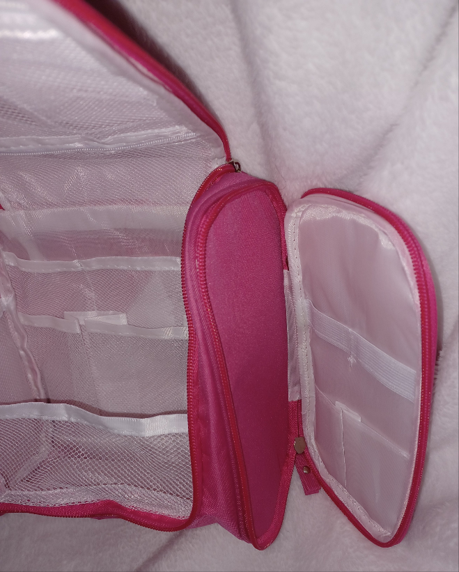 COCOMONEY Pink Makeup bag cosmetic bag anytime bagcute multiple Compartments it can also be used for lunch bag or accessory bag anything bag I love it...9.4 in wide 8 in long 4.1 in sides