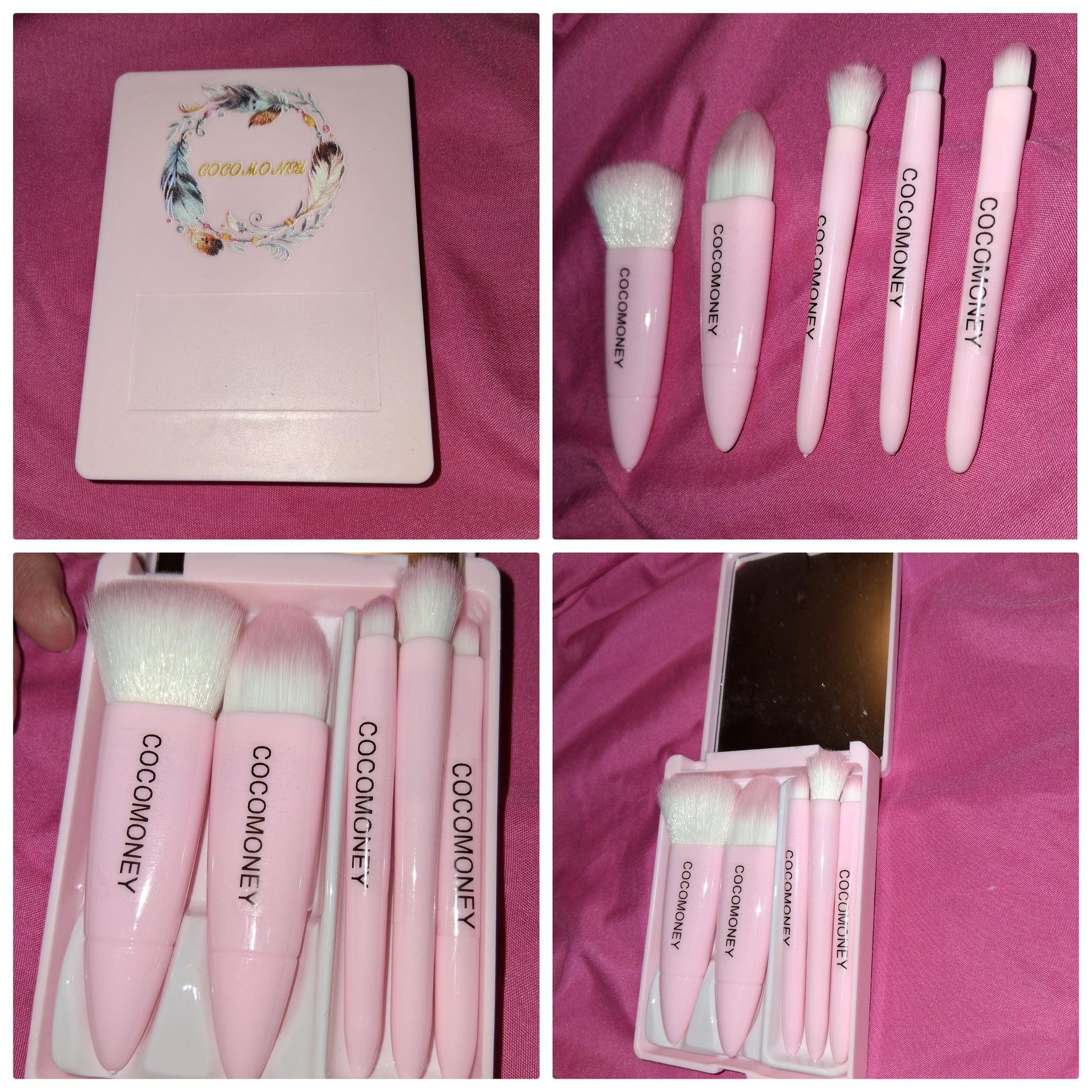 6pcs Makeup Brush Case Kit with Mirror Cosmetic Brush Organizer Box Holder Storage Large Capacity Container DIY Powder Brush Nose Eye Smudge Shadow Detail Foundation Brush pink plastic