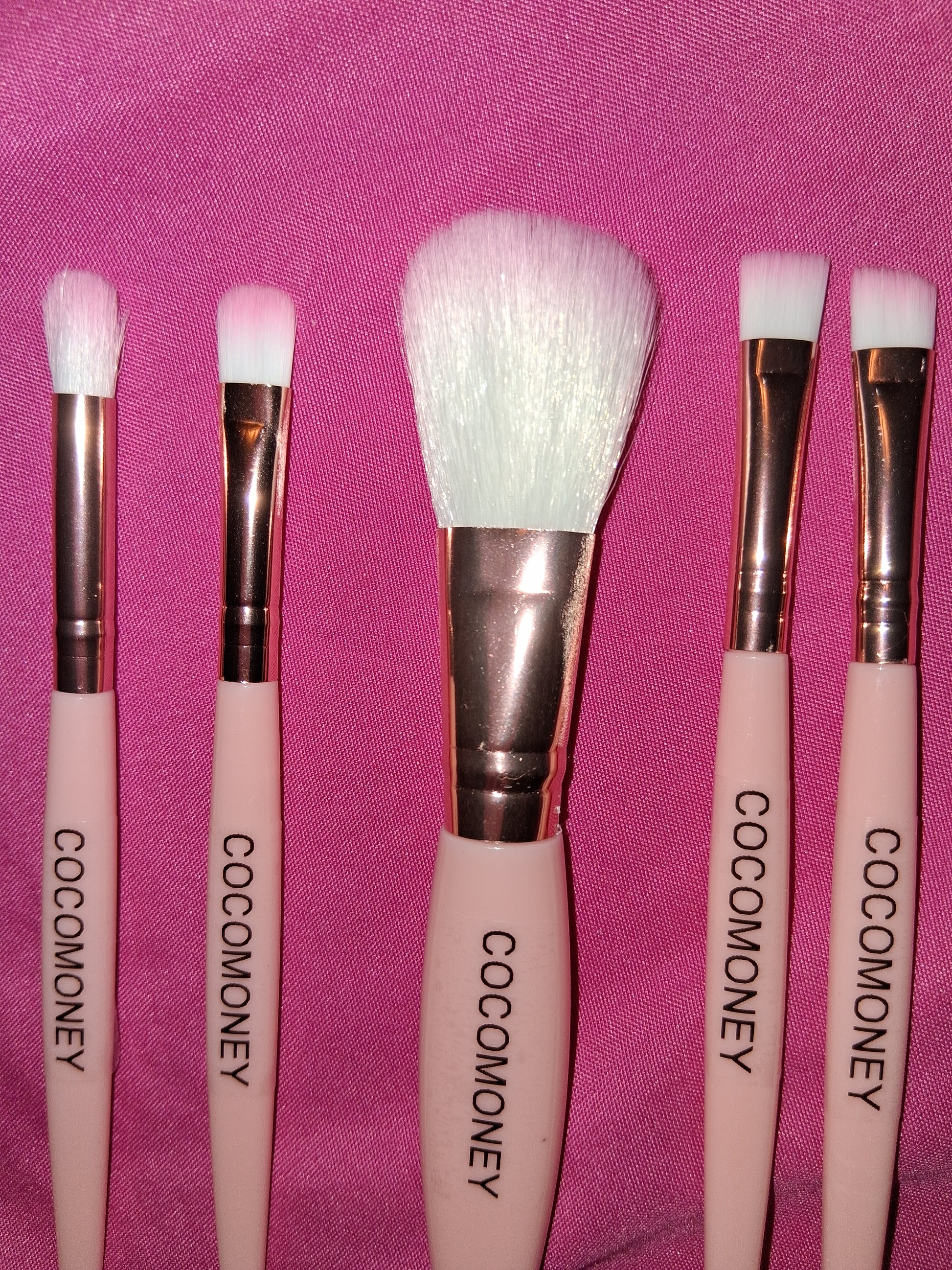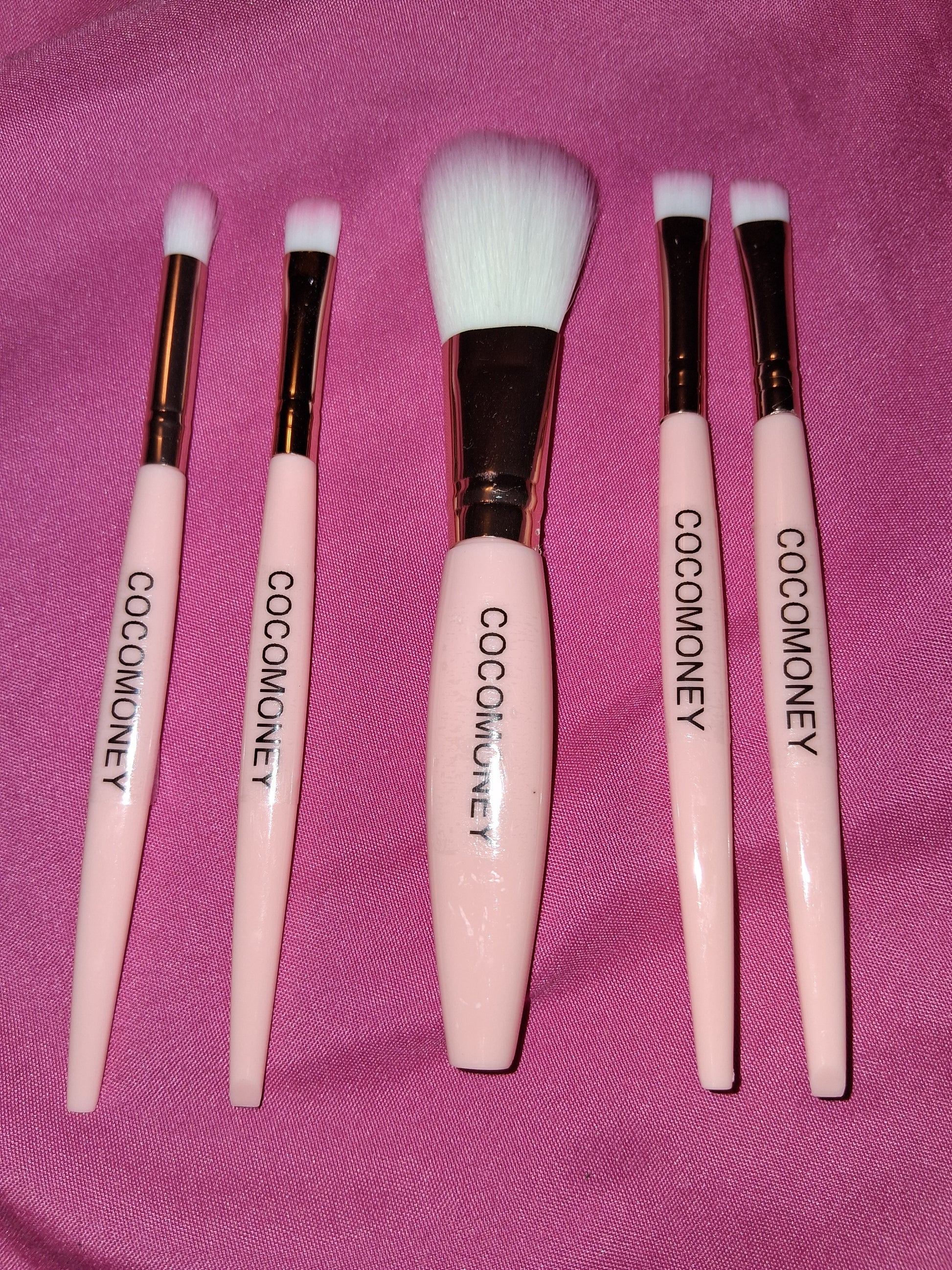 6pcs Makeup Brush Set in Pink with Floral Design - Includes Mirror, Foundation, Powder, Eye & Nose Smudge Brushes in a Compact Organizer Case - with Golden Lettering for a Touch of Elegance, Makeup Accessories plastic