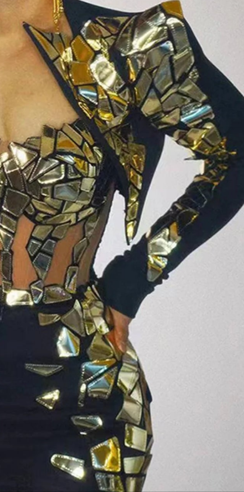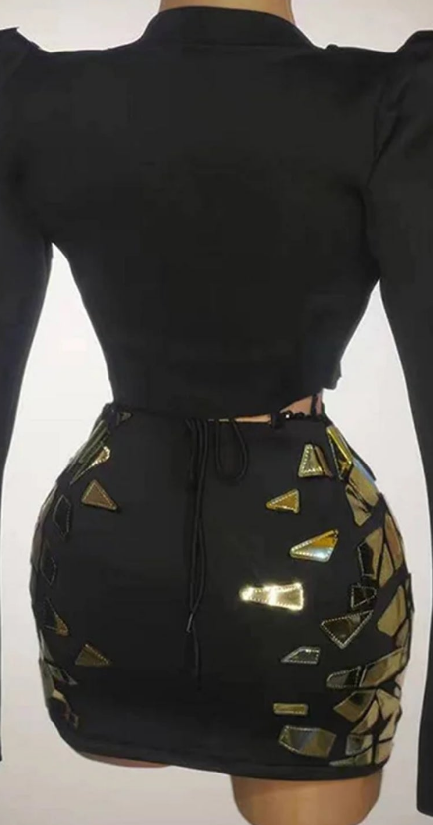 COCOMONEY Mirror Sequin Patchwork Square Neck Mini Dress-Black