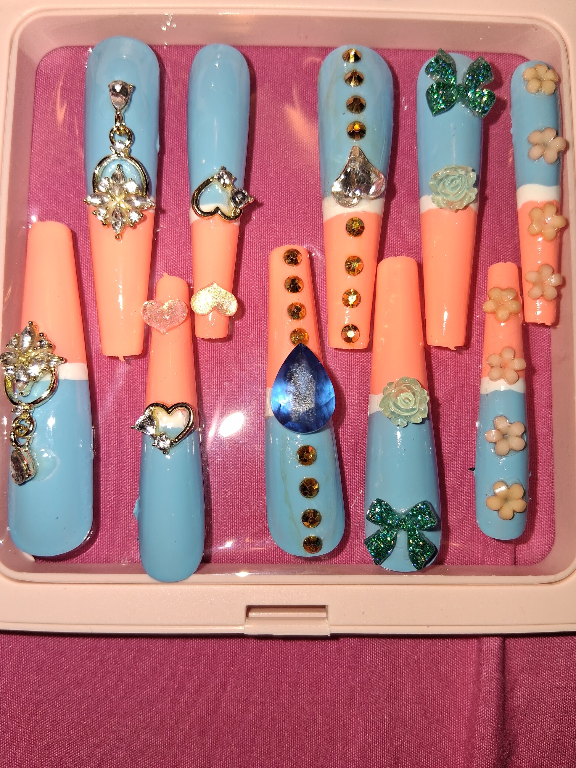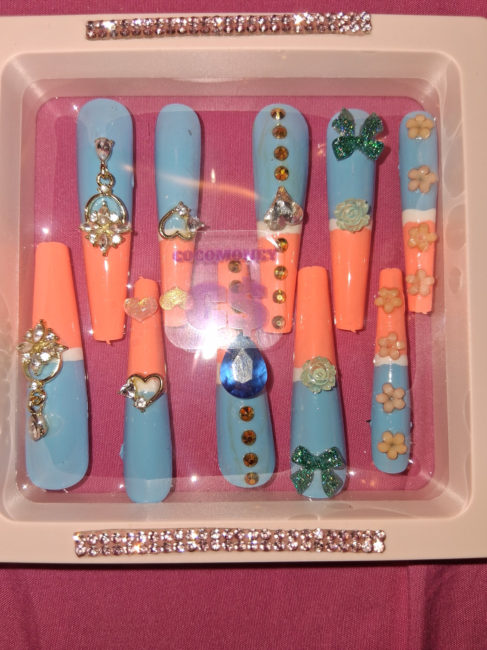 COCOMONEY NAILS CUSTOM 1 OF 1 GLUE ON PRESS ON COMES WITH FREE GIFTS #o39