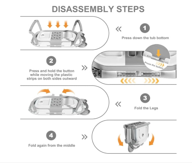 【Double-Fold Collapsible Design】Our upgraded baby bath tub can be effortlessly folded in just two steps to a thickness of under 4 inches. It even folds in half, enabling convenient storage in any corner, making it a space-saving solution.