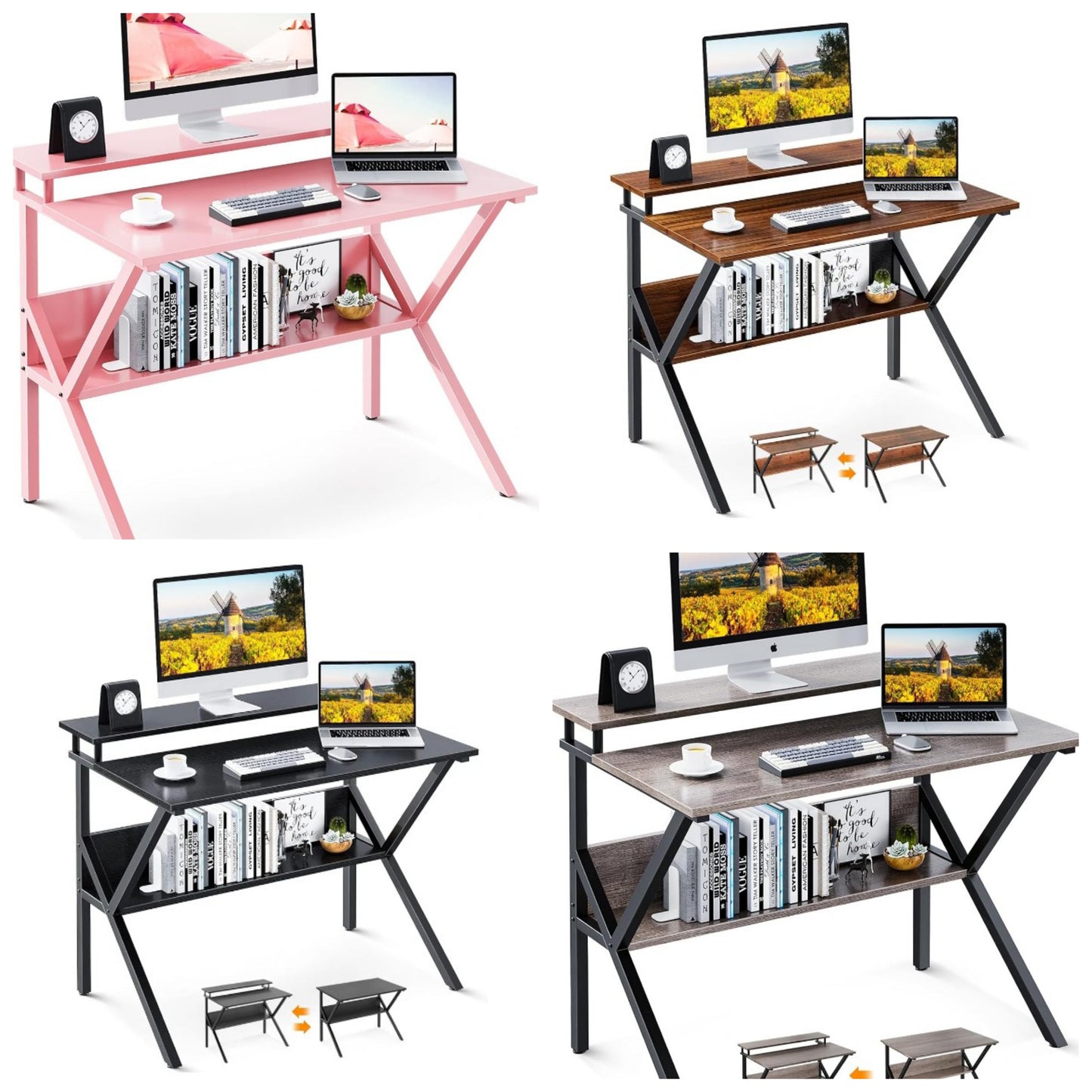Dual-purpose Desk: This small desk can be a desk for PC or laptop. You can assemble the monitor shelf without four supports and it becomes a normal desk which offers a deeper desktop for laptop.(Apply only to 27.5'' desk)