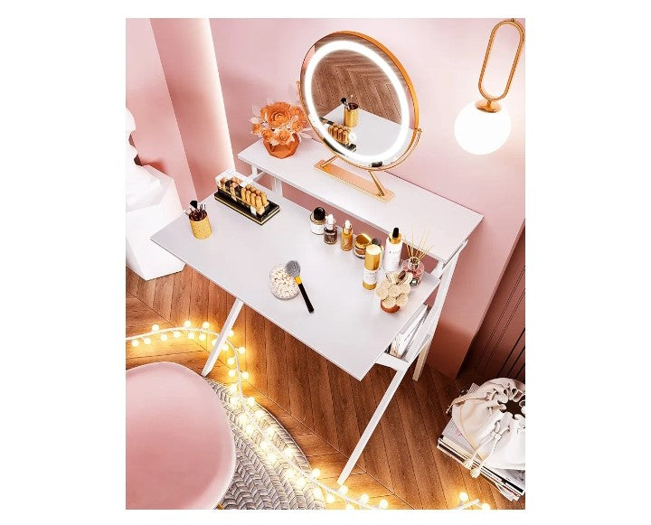 Computer Desk, 27.5 inch Desk for Small Spaces with Storage, Compact Table with Monitor & Storage Shelves for Home Office, Modern Style Laptop Desk,