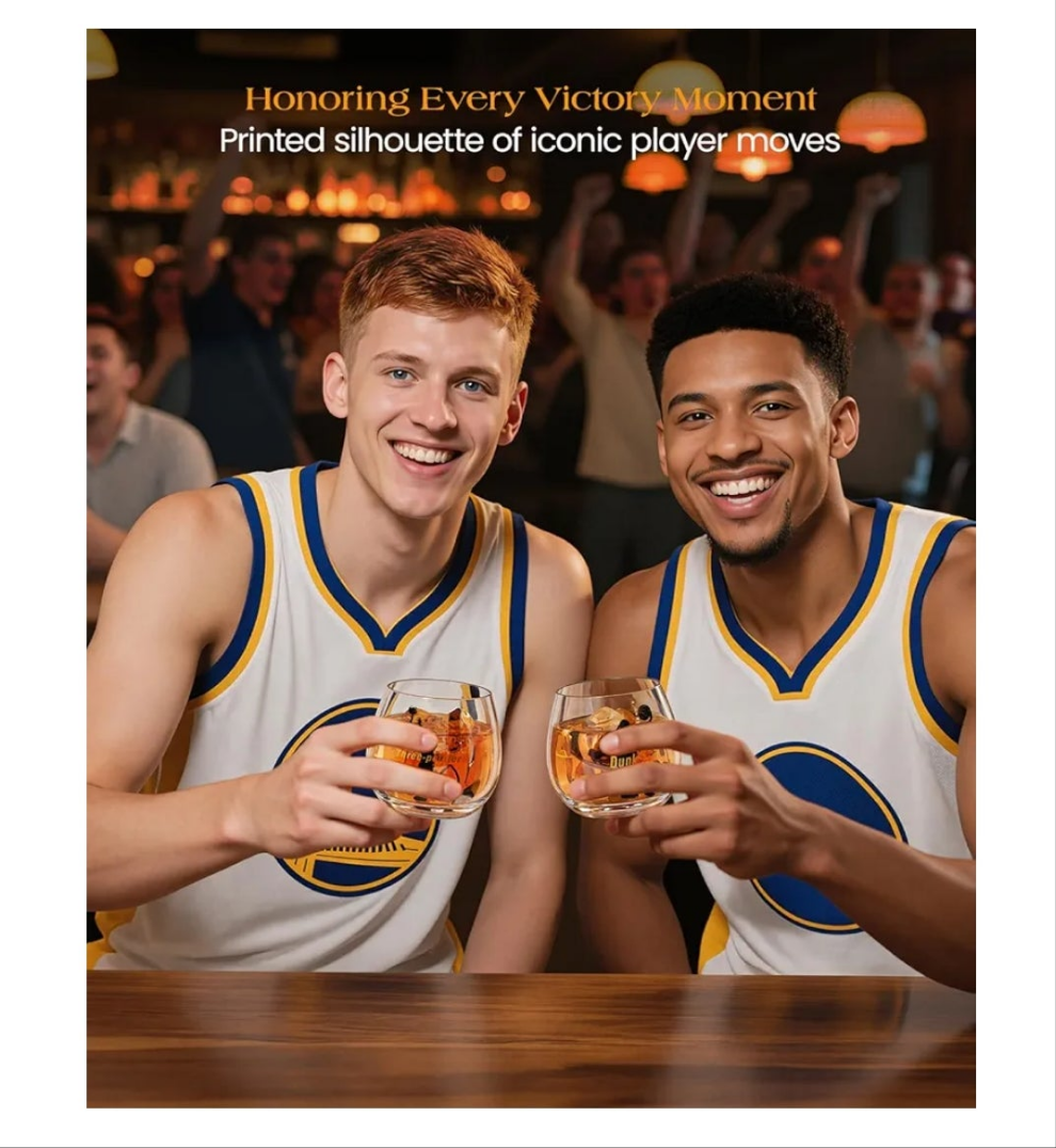 Inspired by Basketball Passion: This whiskey decanter set draws inspiration from basketball's dynamic energy. Featuring a basketball court rack, realistic court lines, and a dunk print on the backboard, it captures the essence of the game. The set comes with one “Three Pointer” print glass and one “Dunk” print glass, complementing the basketball-themed decanter. The decanter hangs from the hoop, and manual rotation simulates a game-winning shot