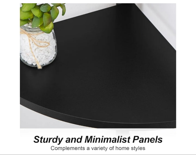 【Unique Mordern Design】: This simple corner shelf is the perfect combination of decorative and functional. It combines the charm of classic and modern furniture styles with an understated sense of luxury. Easily integrated into all home decor styles, versatile sheet and metal elements collide to create an industrial feel. Protect yourself and your family from scratches with a smooth, rounded edge design.