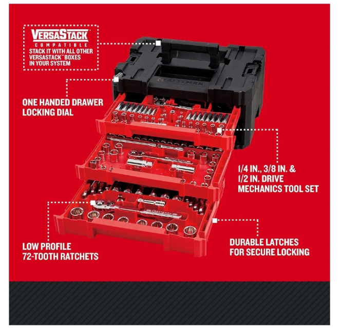 CRAFTSMAN 262-Piece Mechanic Tool Set, Master Socket Set with 3-Drawer VERSASTACK Tool Box, SAE/Metric Set