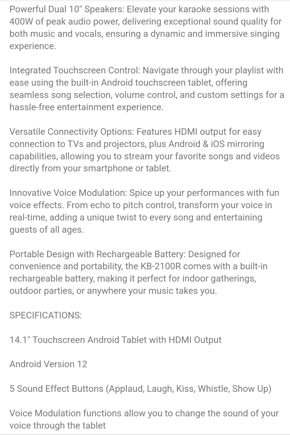 Dazone 4000W Dual 10" Woofers Rechargeable Karaoke Box Machine Wireless Bluetooth Speakers 14.1" Touchscreen Tablet With 2 Wireless Microphone Lyrics Display For Android IOS LED Light HD Sound