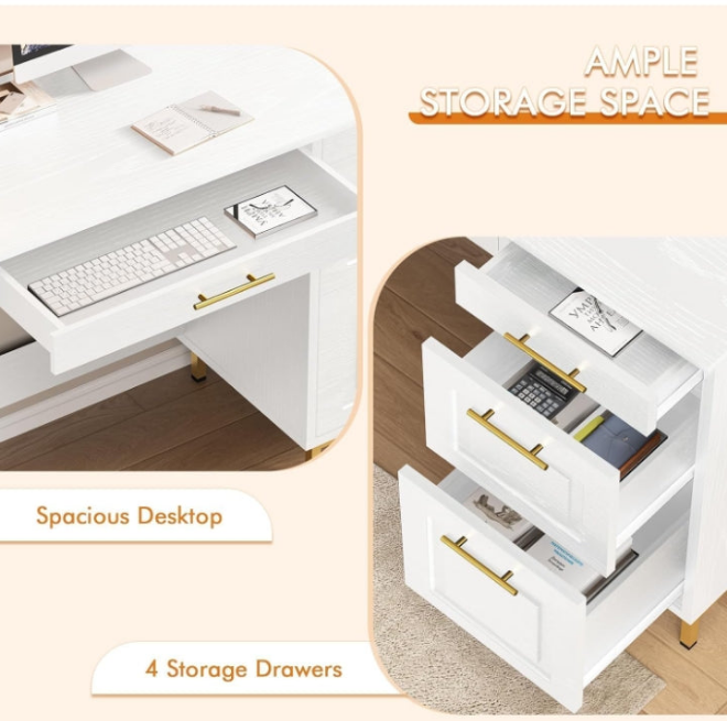 Large Storage Space: The small desk with drawers to store whatever you want. Two large multi-purpose file cabinets hold books, documents, toys and more for easy access. Two small drawers hold home office supplies such as laptops and keyboards