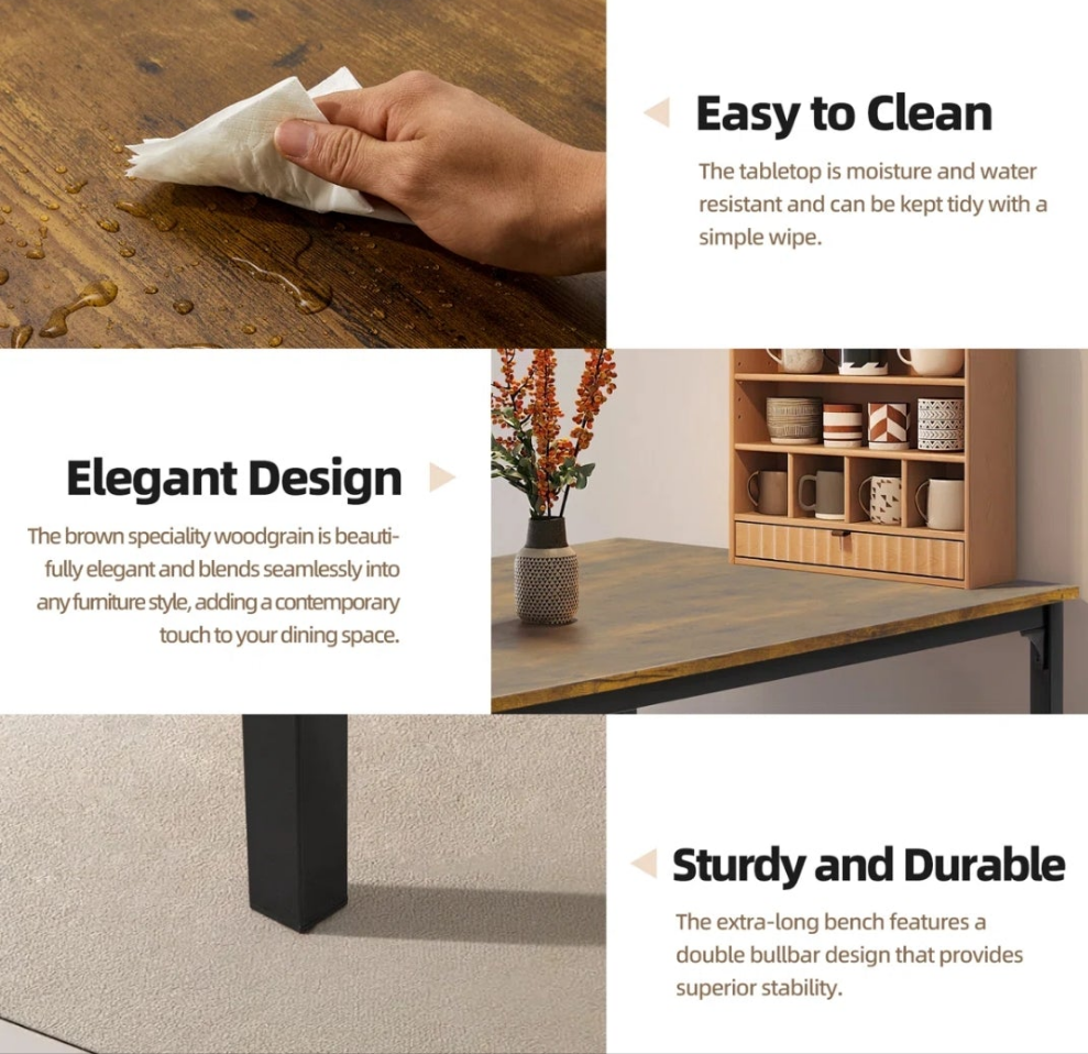 Dining Table Set For 4-6, Ultra-Long Kitchen Table With 2 Benches For Dining