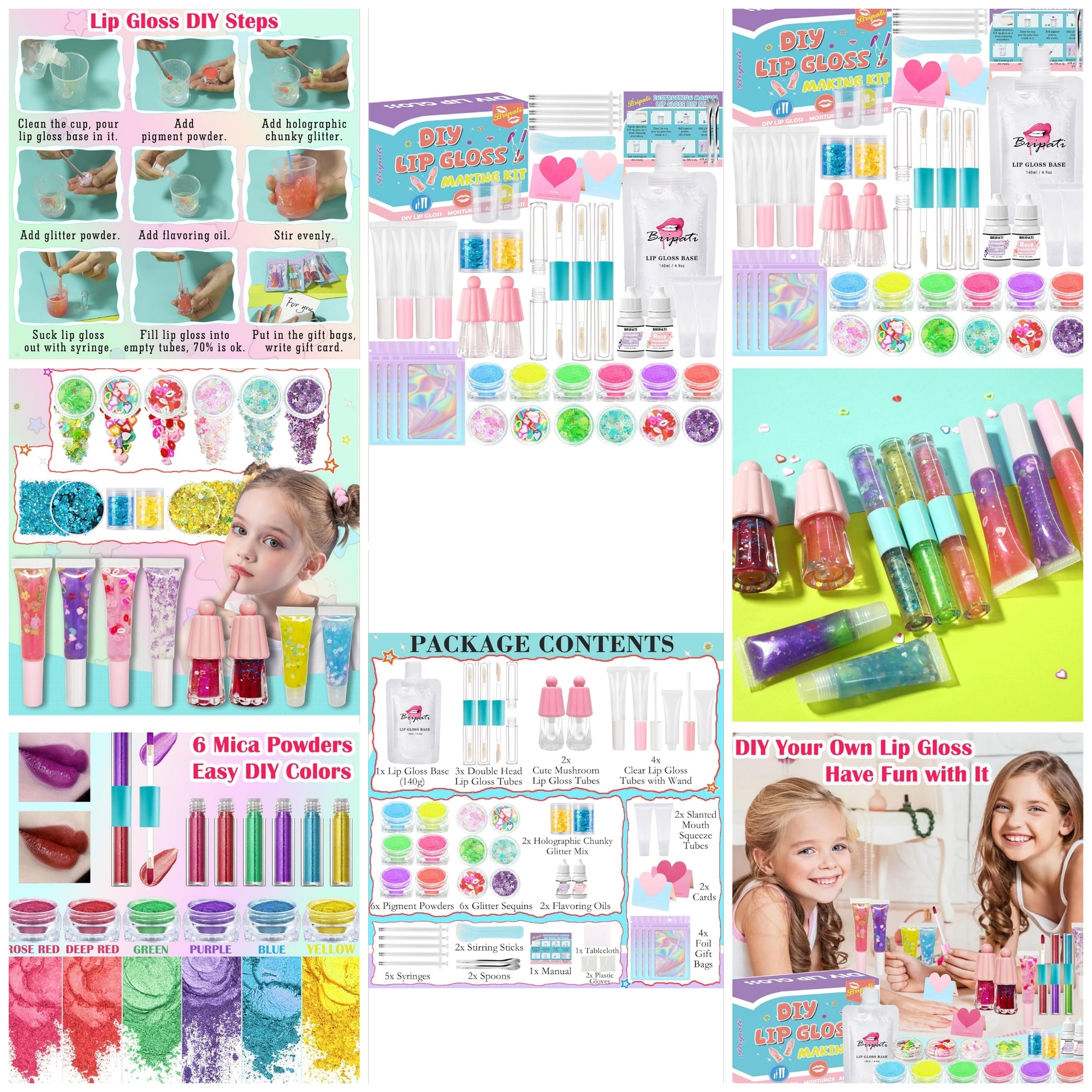 DIY Lip Gloss Making Kit - Make Your Own Lip Glosses Moisturizing DIY Lip Glaze Handmade Glittery Set for Teens Girls Women Makeup Lover Beginner Christmas Birthday Gift