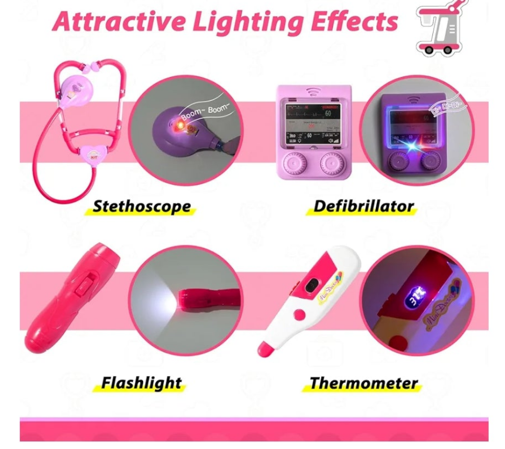 Doctor Kit for kids 3+ Medical Kit Toy Doctor Cart Stethoscope and Other Accessories Boy and Girl Fun Role Playing Game Toy Kids Pretend Play Girls Toys for 3+ There's 4 sets to choose from. Choose your set below.