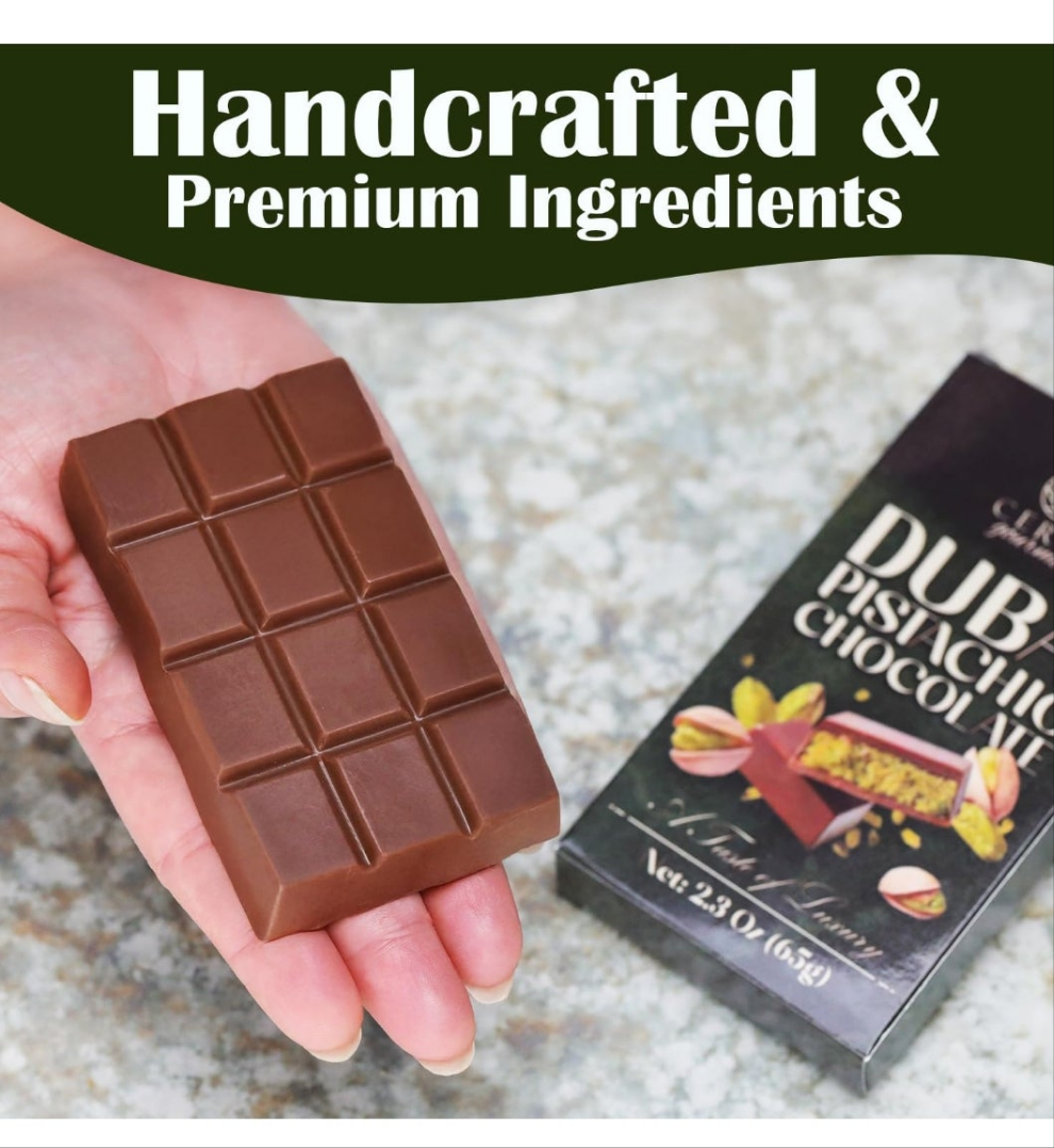 Handcrafted with Premium Ingredients: Made with select pistachios, crispy kunafa, and smooth milky chocolate, each bar is carefully crafted to ensure a high-end gourmet experience in every bite.