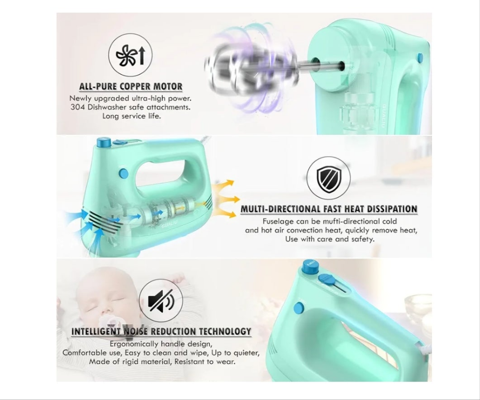 ๐ซใ๐ ๐๐ฌ๐ญ ๐๐๐๐ญ ๐๐ข๐ฌ๐ฌ๐ข๐ฉ๐๐ญ๐ข๐จ๐ง & ๐ฅ๐จ๐ฐ ๐๐จ๐ข๐ฌ๐ ๐๐๐ฌ๐ข๐ ๐งใ:New upgraded hand mixer has a powerful and quiet all-pure copper motor, fast and delicate and evenly complete the mixing, saving time and effort. At the same time, with two-way circulation heat dissipation function, quickly take away the heat and extend the service life. makes baking safer and more enjoyable.
