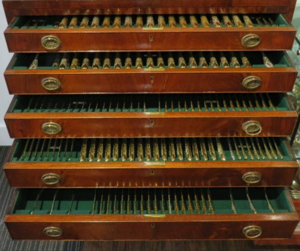 COCOMONEY.STORE. AUTHENTIC VERIFIED GUARANTEED An extensive and fine quality assembled Victorian and later sterling silver-gilt flatware service for 18 by George Adams, Francis Higgins, and CJ Vander, hallmarked London 1863 and later, with a fitted canteen, comprised of: