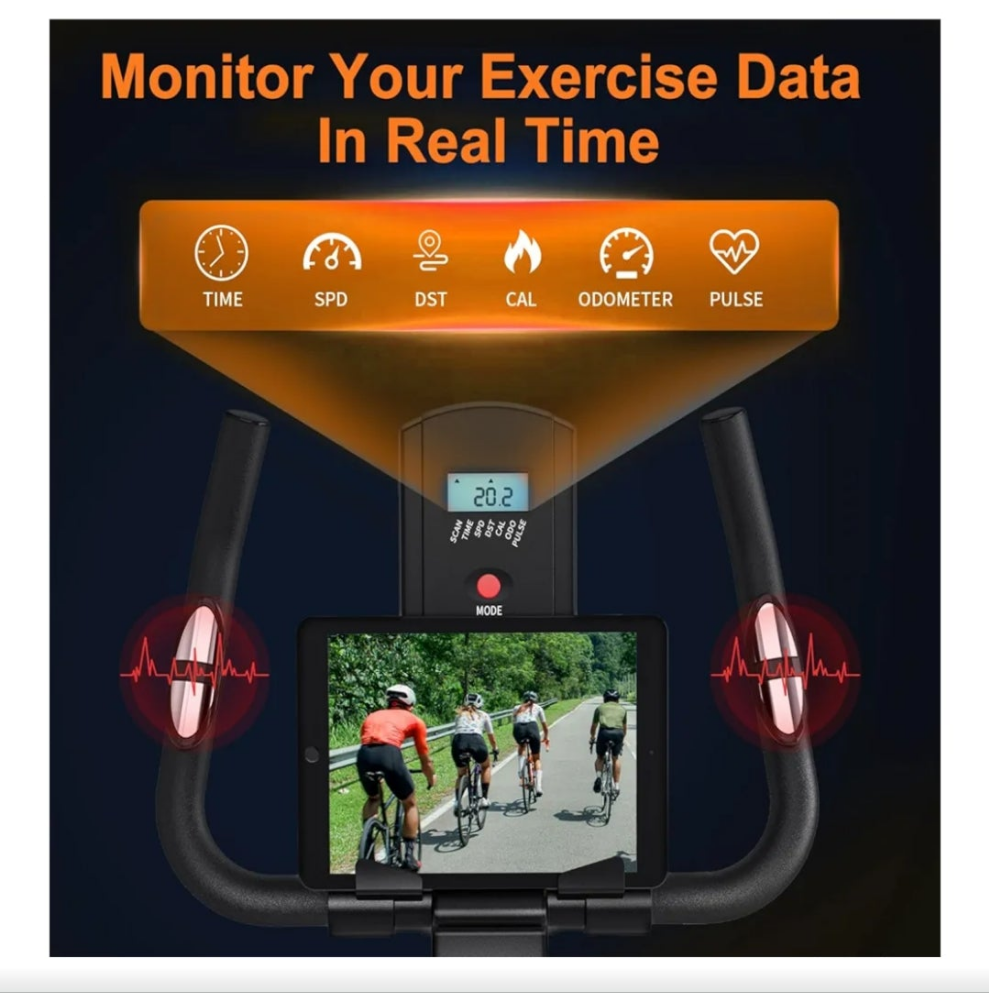 Track Your Progress with Precision: Stay motivated and informed with our electronic display that records essential exercise data such as time, speed, distance, and calories burned. Plus, the included cell phone holder lets you enjoy entertainment while riding, making your exercise bikes experience even more enjoyable