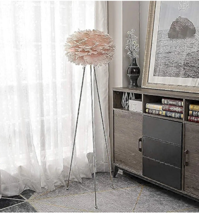Feather Floor Lamp, Tripod Floor Lamp with Pink Feather Shade, Standing Light for Bedrooms/Dining Room/Living Room/Kitchen,Gold Classic