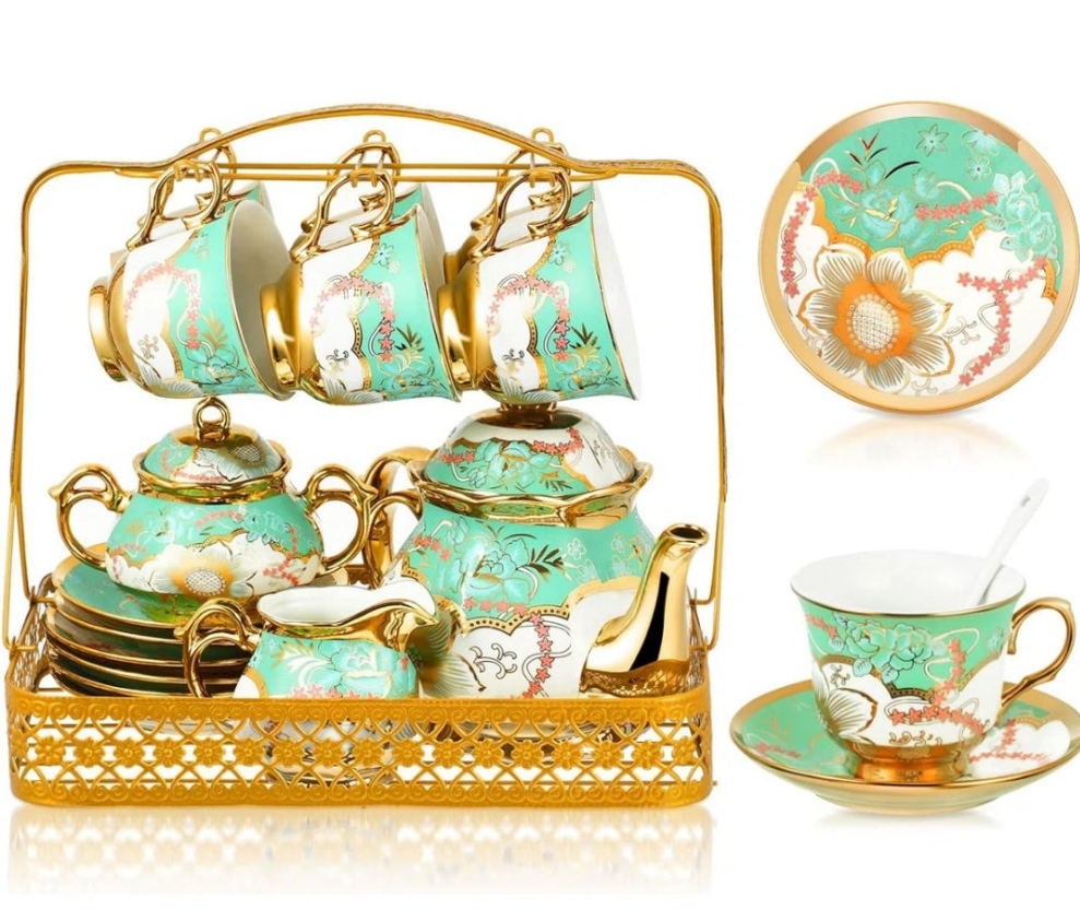 Porcelain Floral Teapot Set For 10