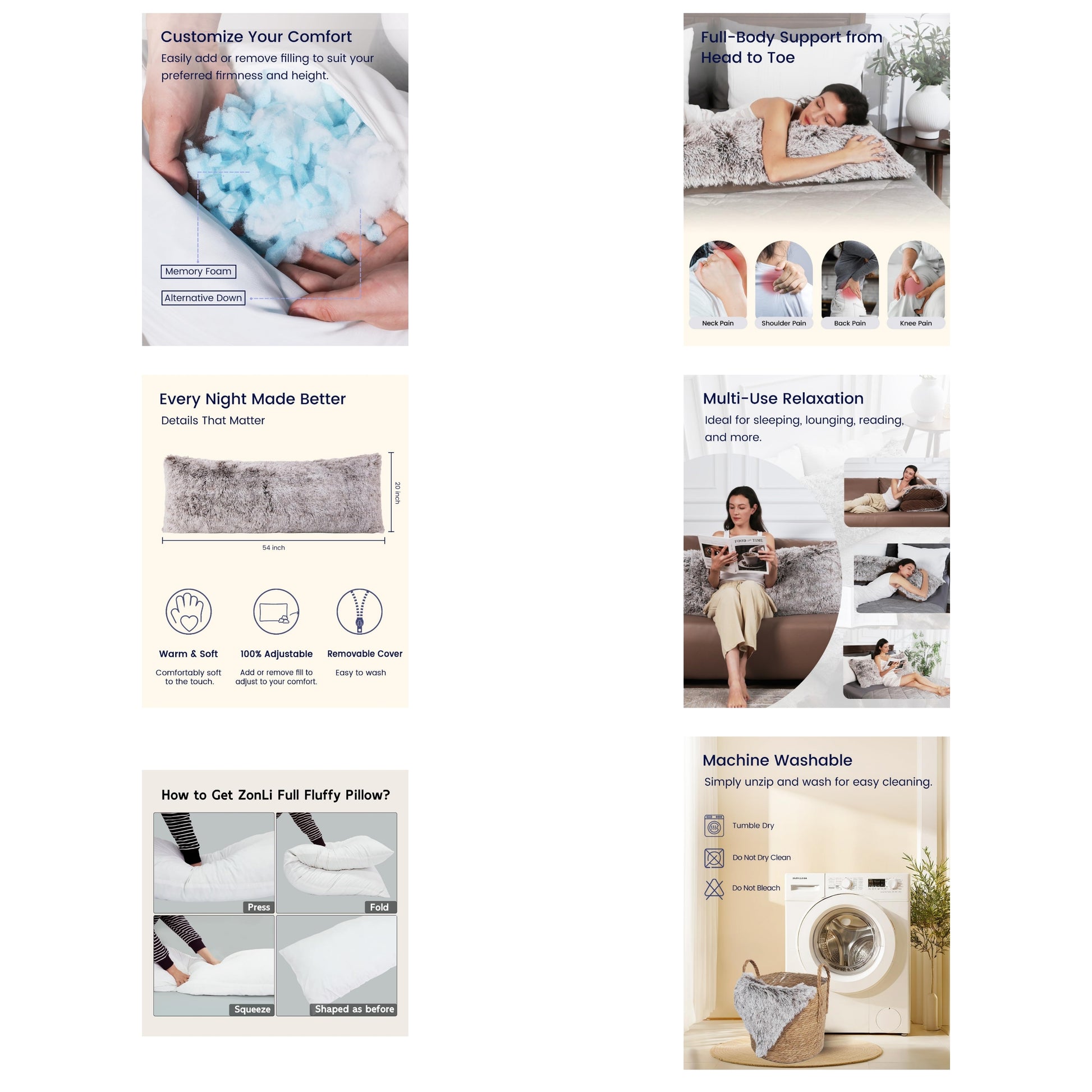 CERTIFIED SAFE FABRIC FOR YOUR WELL-BEING: Your health is our priority.ZonLi body pillow is certified by OEKO-TEX, guaranteeing it is free from hazardous chemicals and heavy metals. Committed to your satisfaction, we provide exceptional service and are available to address any questions or concerns within 24 hours