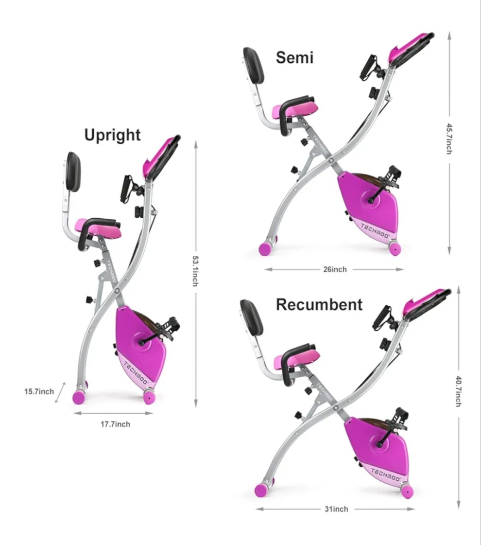 Folding Exercise Bike Portable Upright Adjustable Backrest Cycling Recumbent Stationary Bike Slim Indoor Workout Fitness Cardio Foldable Exercise Bicycle Machine with Pulse Sensor LCD Monitor Arm Resistance BandsSpecial FeaturePortable, Distance Travelled
