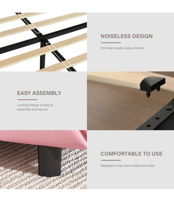 Stable & Noise-free: The kids full bed frame is made of durable metal frame and wooden slats, and the floor-standing design makes the bed more solid without springs. The silent foam strips on the bed frame can eliminate friction noise and ensure your sleeping environment