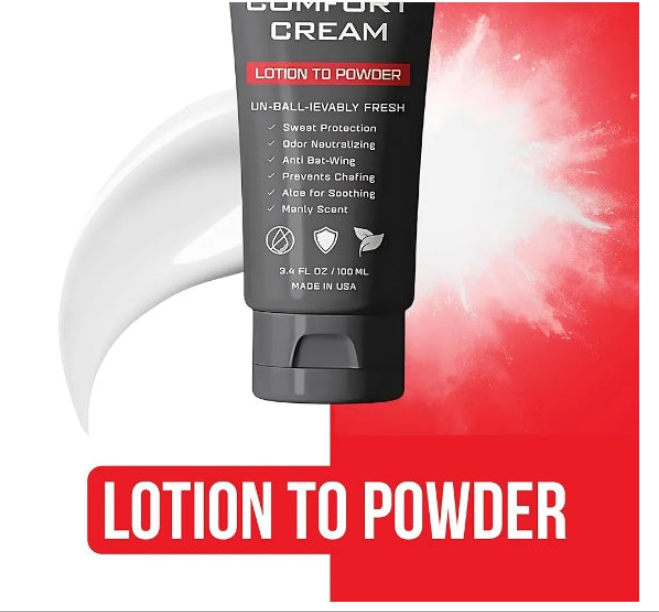 LOTION-TO-POWDER TECHNOLOGY - Comfort Cream applies as a lotion, and dries as a powder to absorb your sweat and create an anti-friction layer, all while keeping you smelling like you just got out of the shower, even if you didn’t.