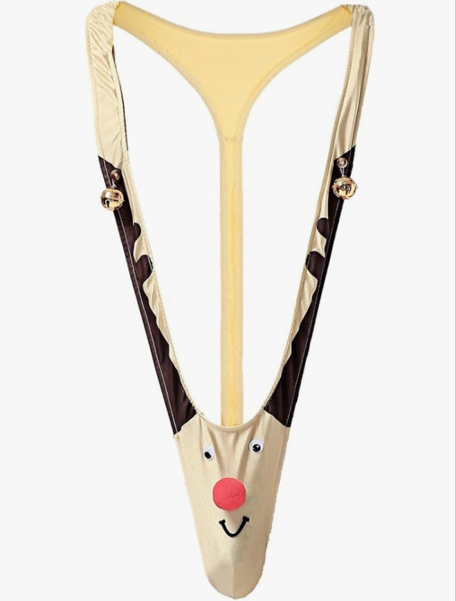 Gag Gift Reindeer Mankini Men Thong Underwear with Bells for White Elephant Exchange Gifts Valentines Day