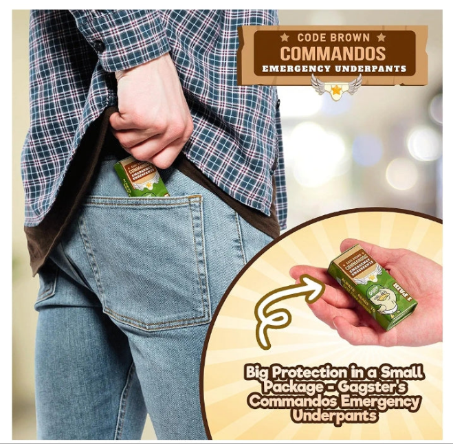 DON'T GET CAUGHT WITH YOUR PANTS DOWN: Our emergency underpants are your ticket to confidently navigating any unexpected situation that comes your way! Whether you need a quick change or just want to be prepared for the unexpected, these instant underwear have got you covered (quite literally). And in the rare event that you're not satisfied with your purchase, rest assured we've got your back(side)! With our emergency underwear gag gift, you'll be ready to play the hero in any emergency, ensuring you're never caught unprepared.Age Range Description Adult