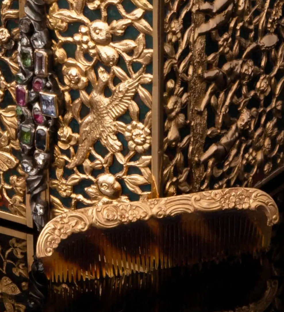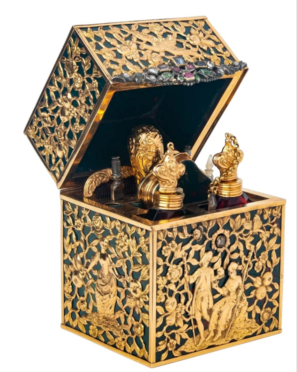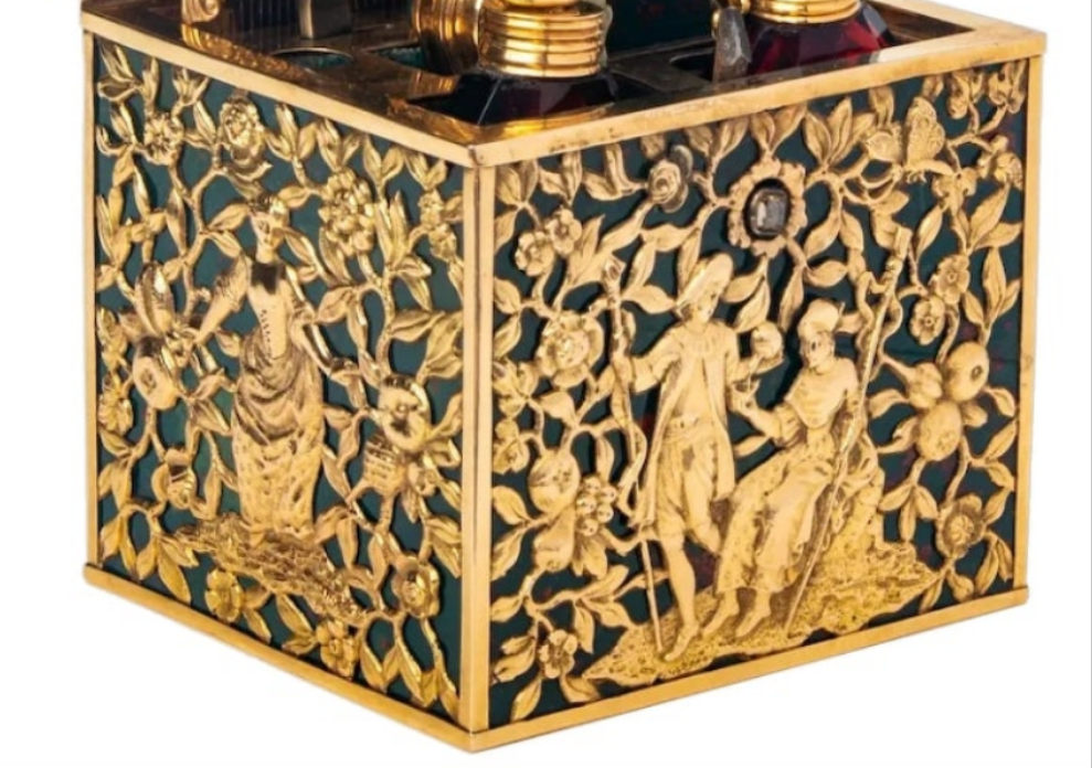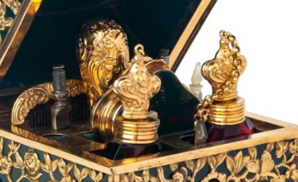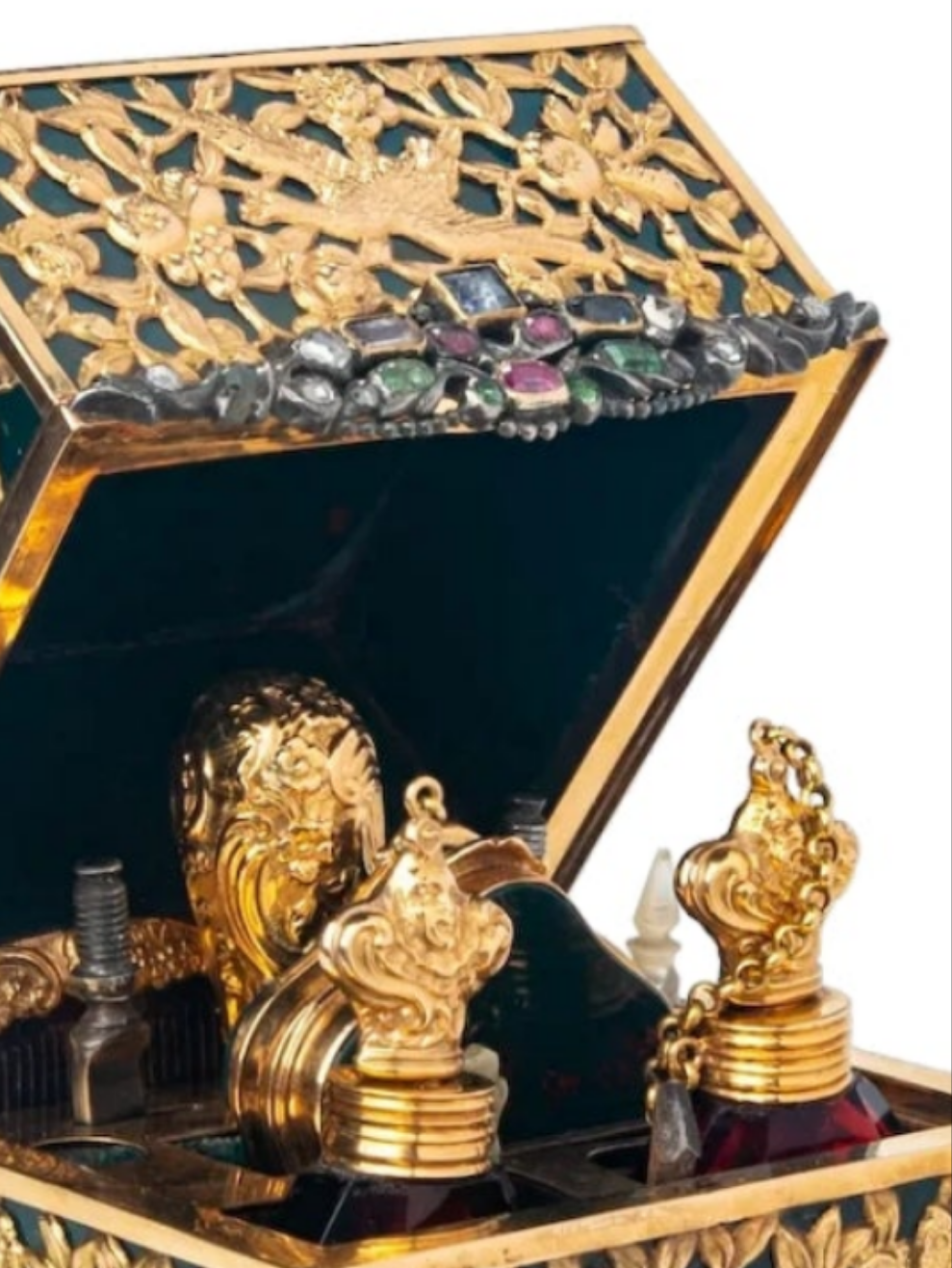 Antique II Gold and Hardstone Ladies Travel Scent Bottle Necessaire