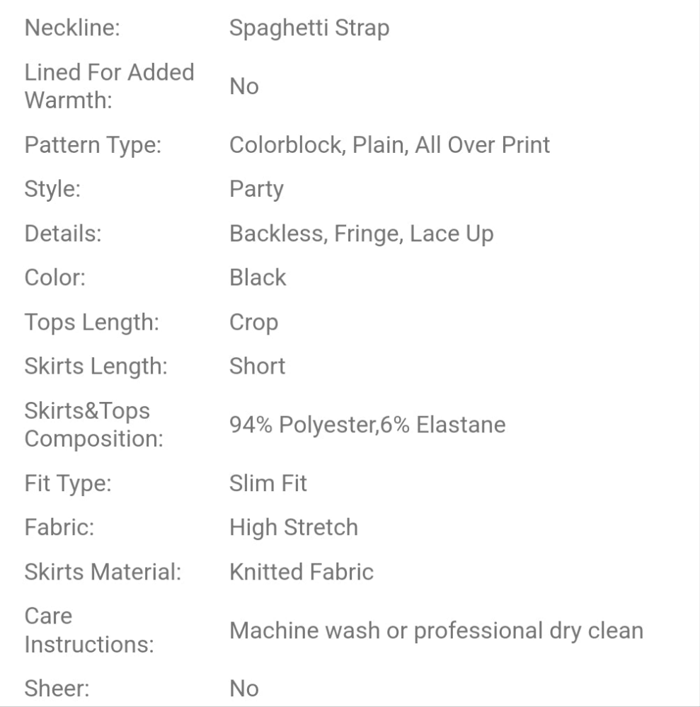 2pc Black Sexy Shiny Criss-Cross Backless Halter Top And Sequin Fringed Mini Skirt 2-Piece Set, Party 2-Piece Set,Disco Outfit,Sexy 2-Piece Set COCOMONEY