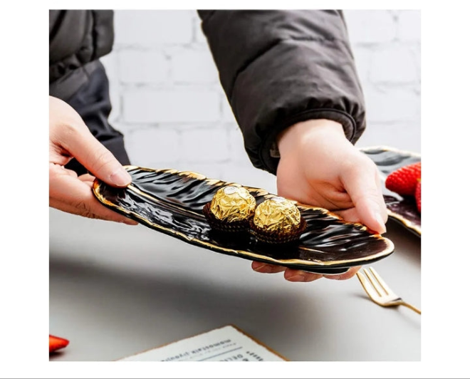 Gold-plated ceramic plate set in spring design, tray, dishes, accessories, fruit plate, kitchen, dining room, Plates Kitchen-