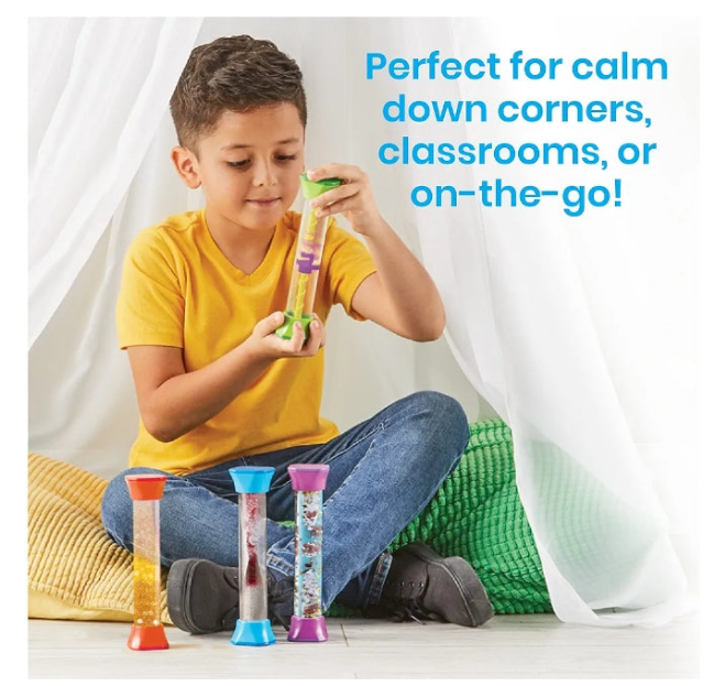 Hand 2 mind Sensory Fidget Tubes, Calming Toys for Kids, Occupational Therapy Toys, Play Therapy, Stress Relief Toy, Comfort Items for Anxiety, Calm Down Corner Supplies (Set of 4)