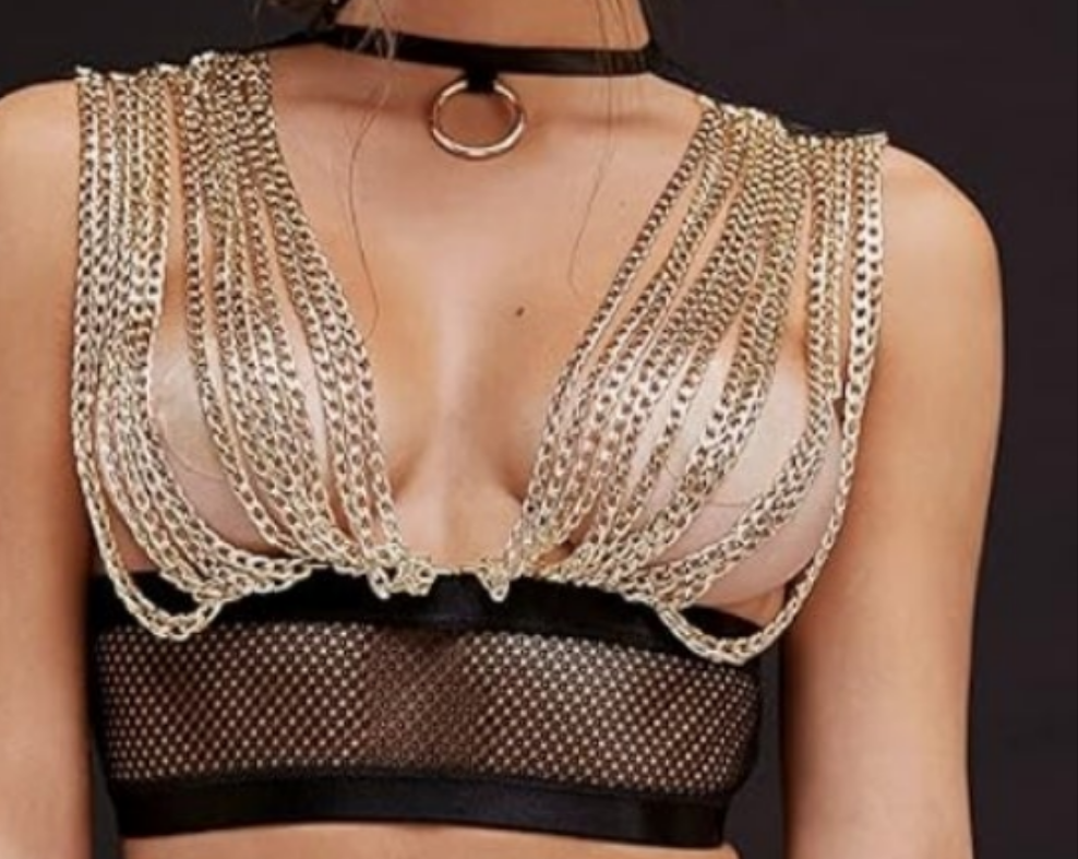 🌶 Features: This body lingerie set includes bandage bra with golden chains and high-waisted panties, made of black mesh, black rubber, gold fittings, whip and chains. You will get it in beautiful and original box.