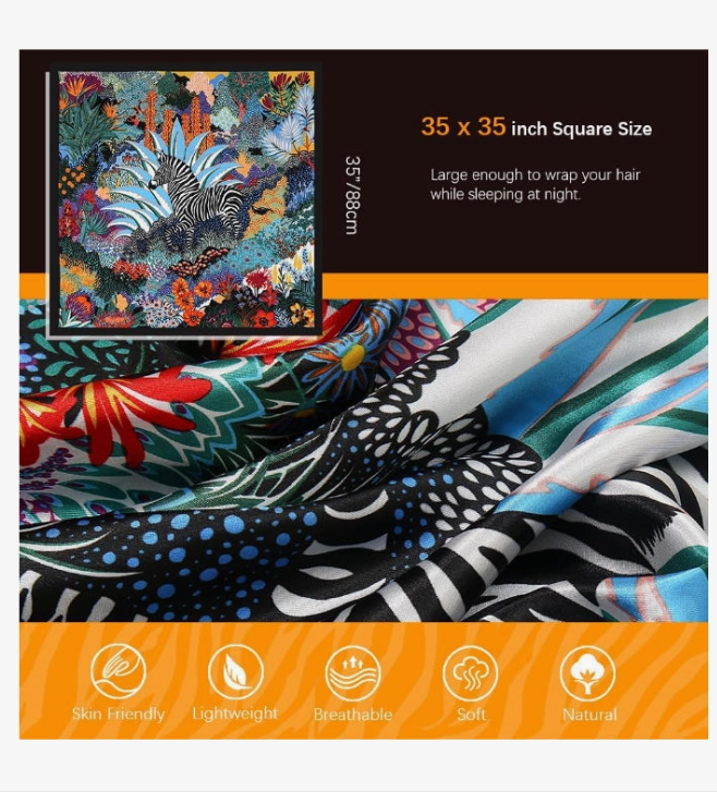 Luxurious Quality & Size: The scarf for women are crafted from lightweight polyester satin with a soft,silky feel. Boasting a fine luster, they exude elegance. Measuring 35*35 inches. Elevate your style with our luxurious scarf and embrace refined fashion